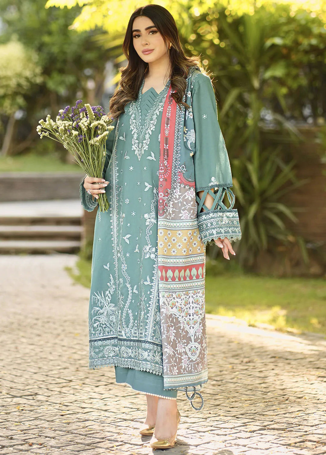 Shiree By Sable Vogue Embroidered Lawn Suit Unstitched 3 Piece SV24S D-01 Mint Garden - Summer Collection