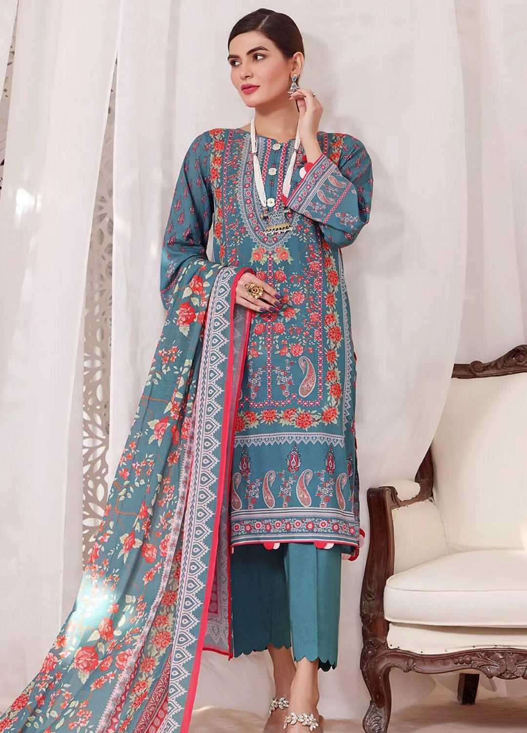 Komal Prints By Lakhany Printed Lawn Suits Unstitched 3 Piece LSM23KP-V2 LG-AM-0037-B - Summer Collection