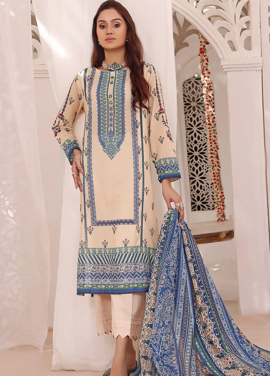 Manara Embroidered Lawn Suits Unstitched 3 Piece MNA23LL ML-06 Narah - Luxury Collection