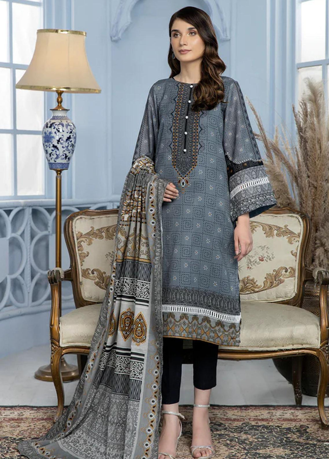 Arzoo by Humdum Embroidered Lawn Suits Unstitched 3 Piece HD22AZ D-06 Blue Bell Dull - Summer Collection