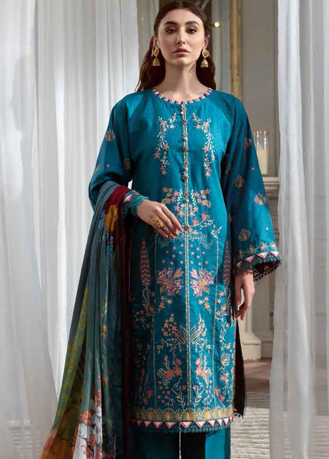 Mehru By Faixa Faixal Embroidered Lawn Suits Unstitched 3 Piece FFX22M E22-01 Aqua - Luxury Collection