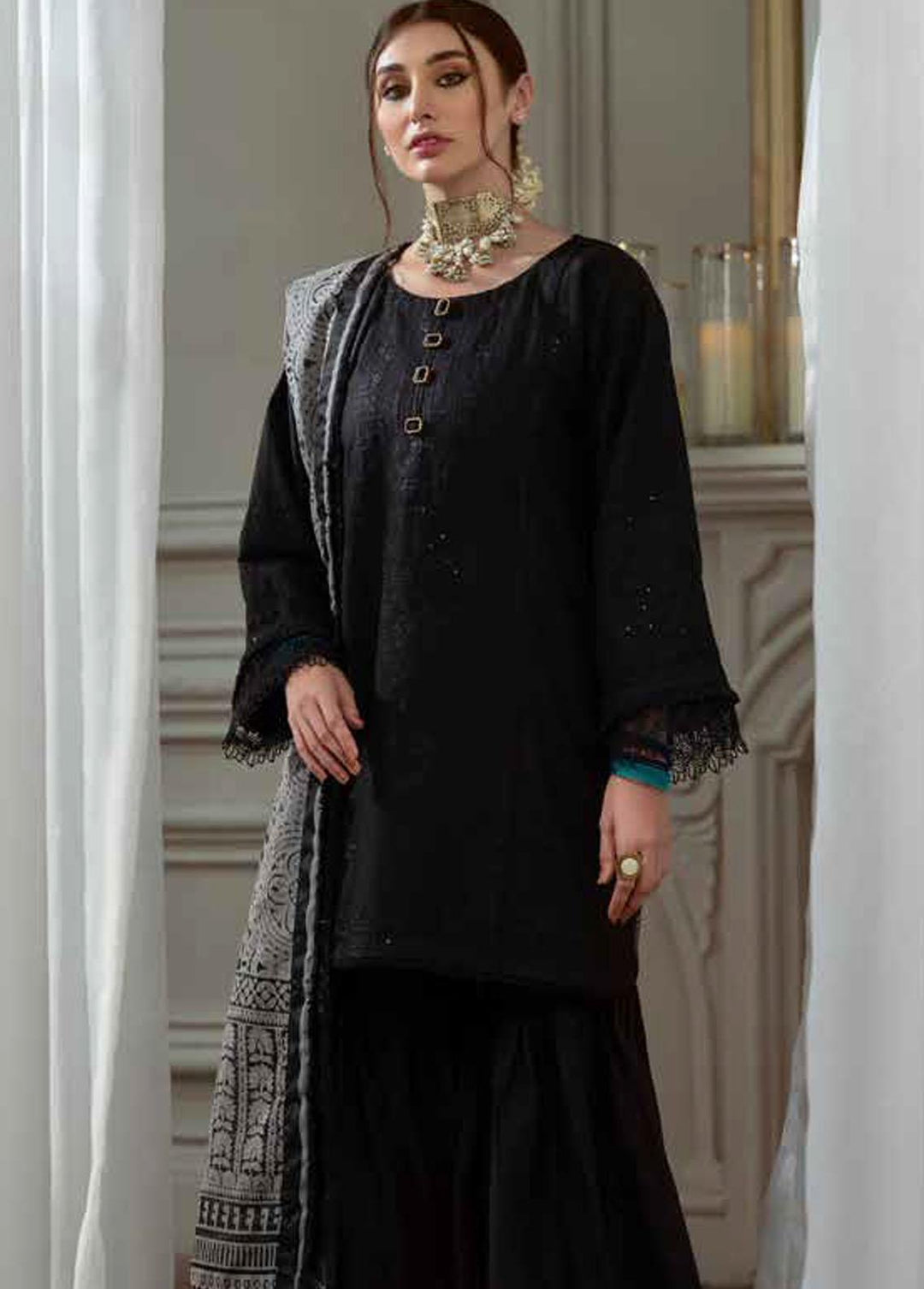 Qara By Charizma Embroidered Lawn Suits Unstitched 3 Piece CRZ22-QB2 CQ-12 - Black & White Collection