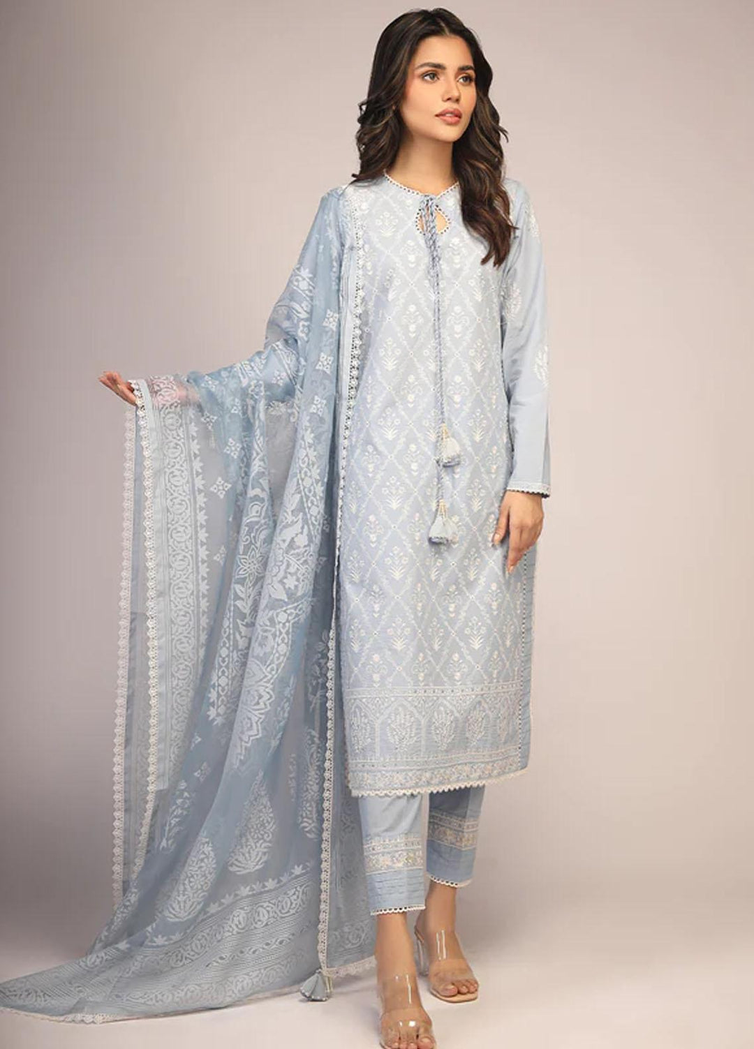 Naayas Embroidered Lawn Suits Unstitched 3 Piece NS23E Jardin Blue - Eid Collection