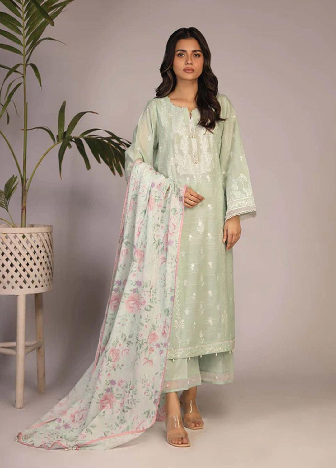 Hazel By Izel Embroidered Lawn Suits Unstitched 3 Piece IZL23H HLLC-04 Sage - Luxury Collection