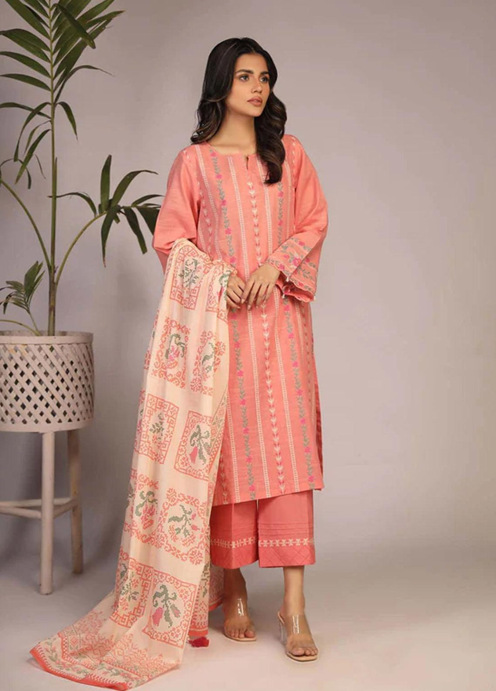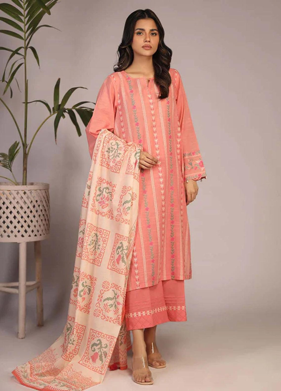Hazel By Izel Embroidered Lawn Suits Unstitched 3 Piece IZL23H HLLC-10 Flamingo - Luxury Collection