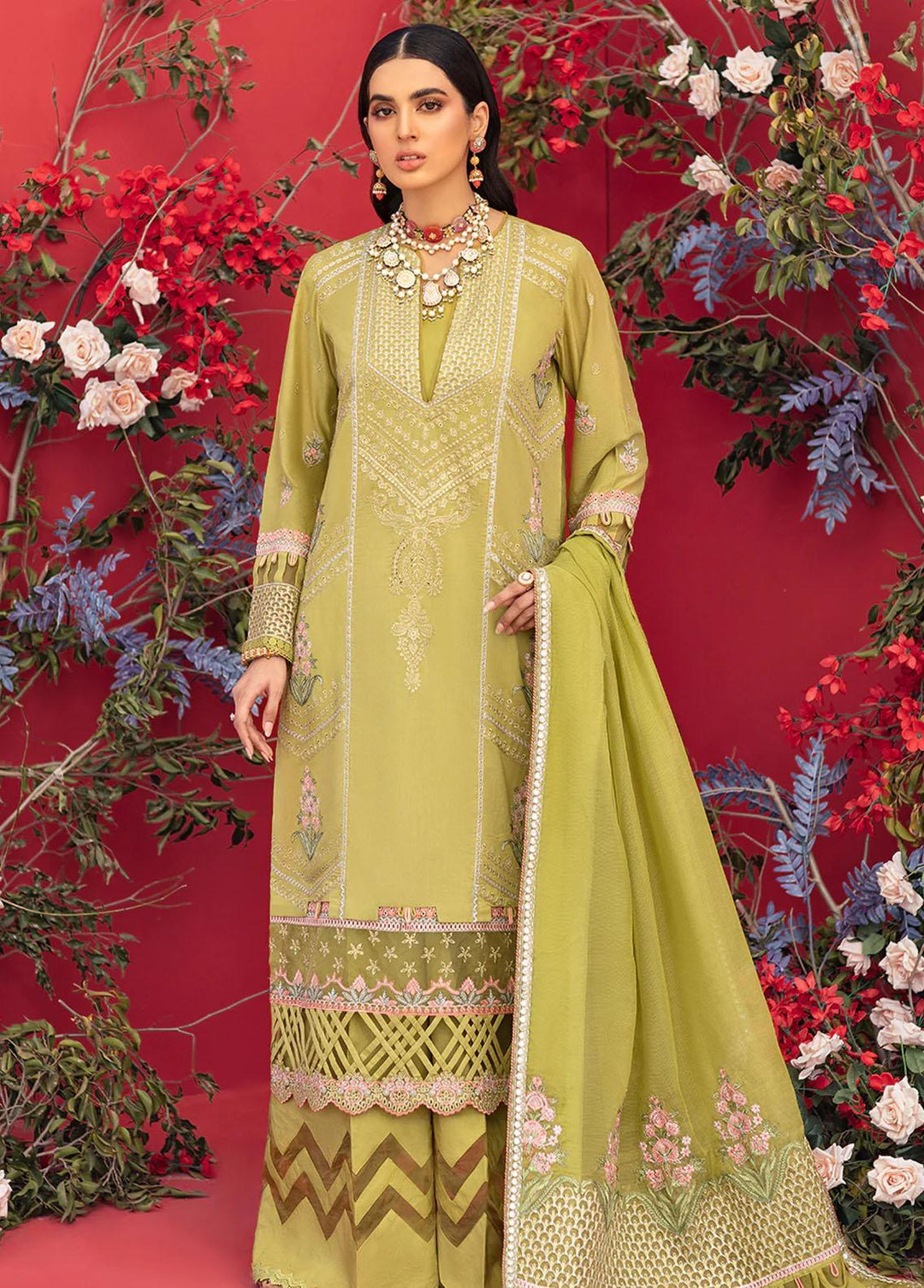 Al Karam Embroidered Lawn Suits Unstitched 3 Piece AK22S SS-27-22-Lime Green - Summer Collection