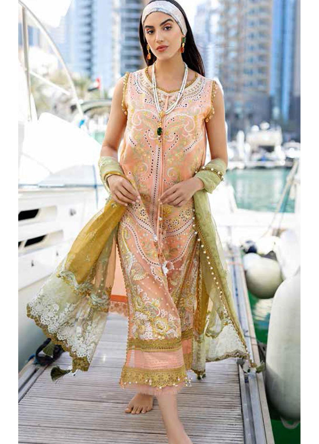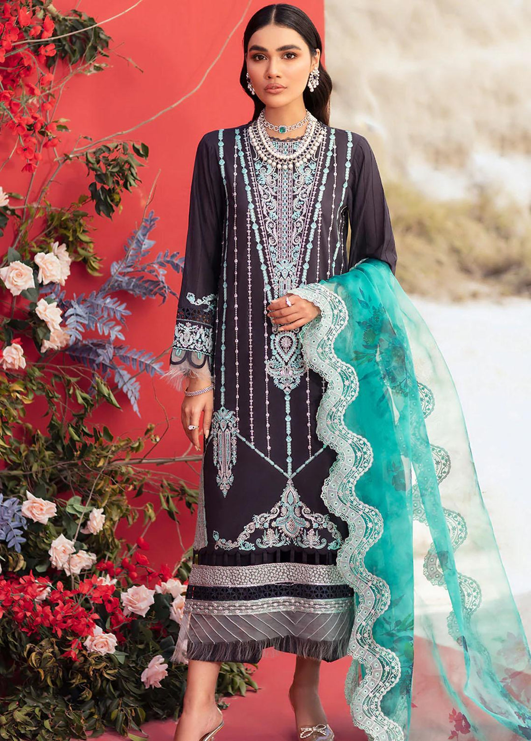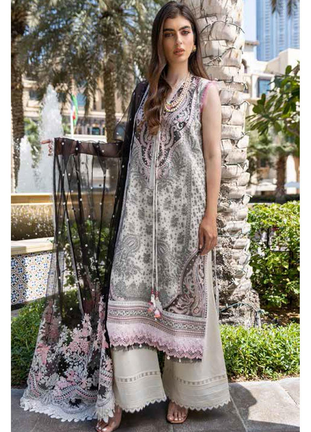 Faixa Faixal Embroidered Lawn Suits Unstitched 3 Piece FFX22L MARVI - Luxury Collection