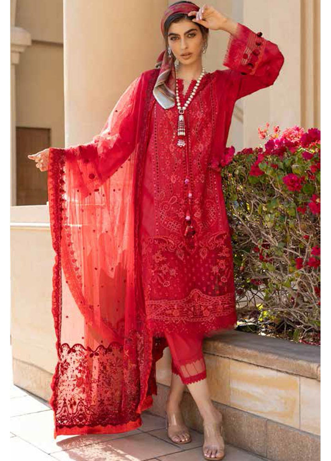 Al Karam Embroidered Lawn Suits Unstitched 3 Piece AK22S SS-01-22-Red - Summer Collection