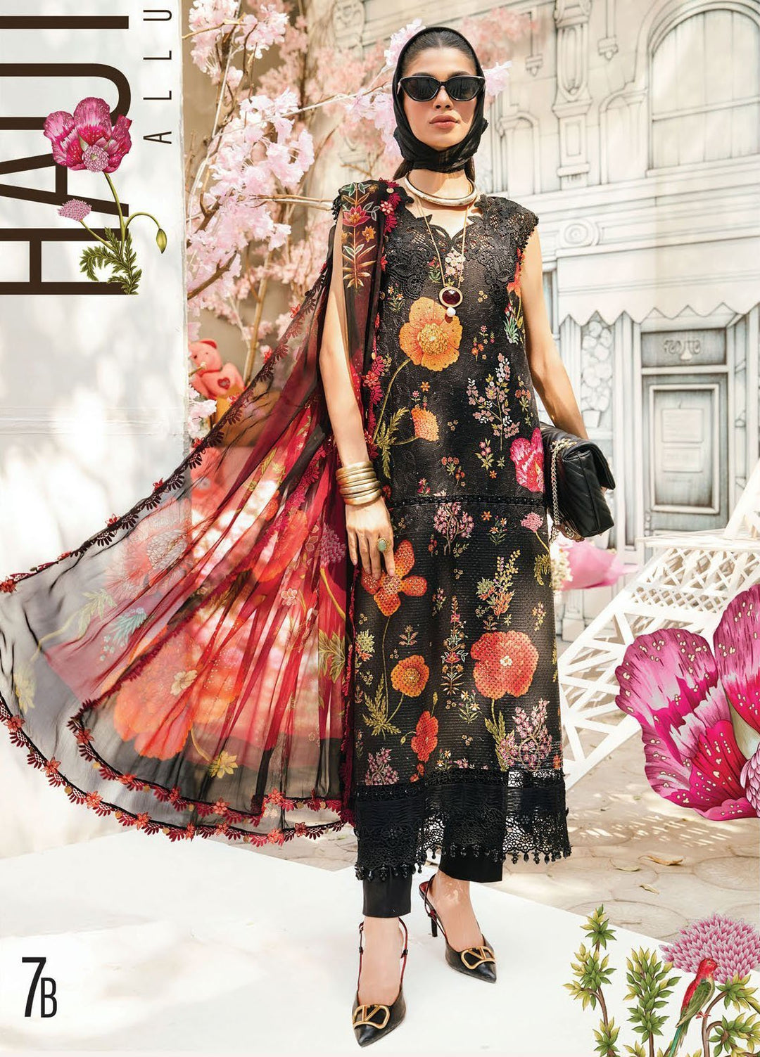 M Prints by Maria B Embroidered Lawn Suits Unstitched 3 Piece MB25MPE 7-B - Summer Collection