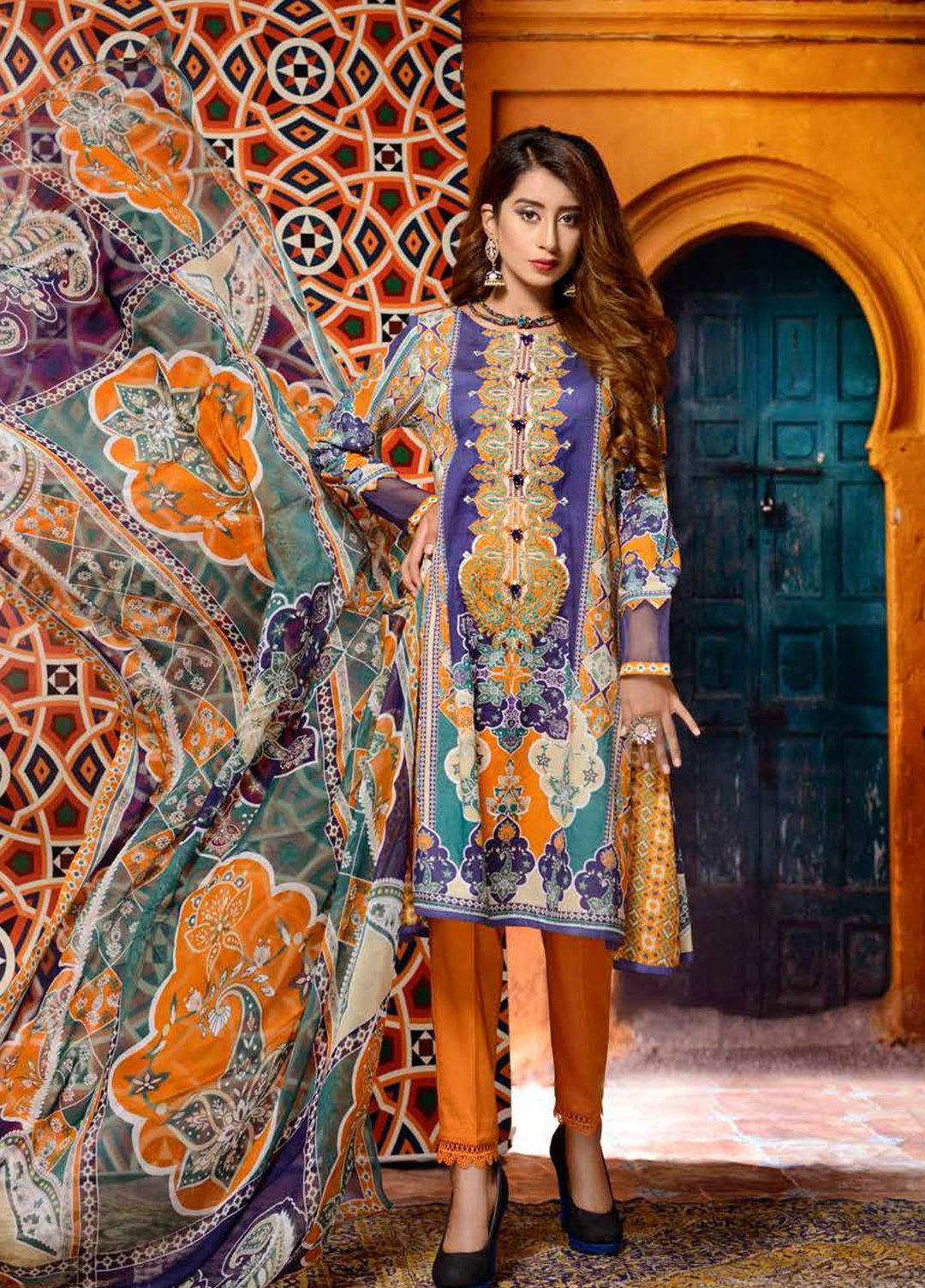 Maya by Nureh Embroidered Lawn Unstitched 3 Piece Suit NU21M 09 Byzantine - Summer Collection