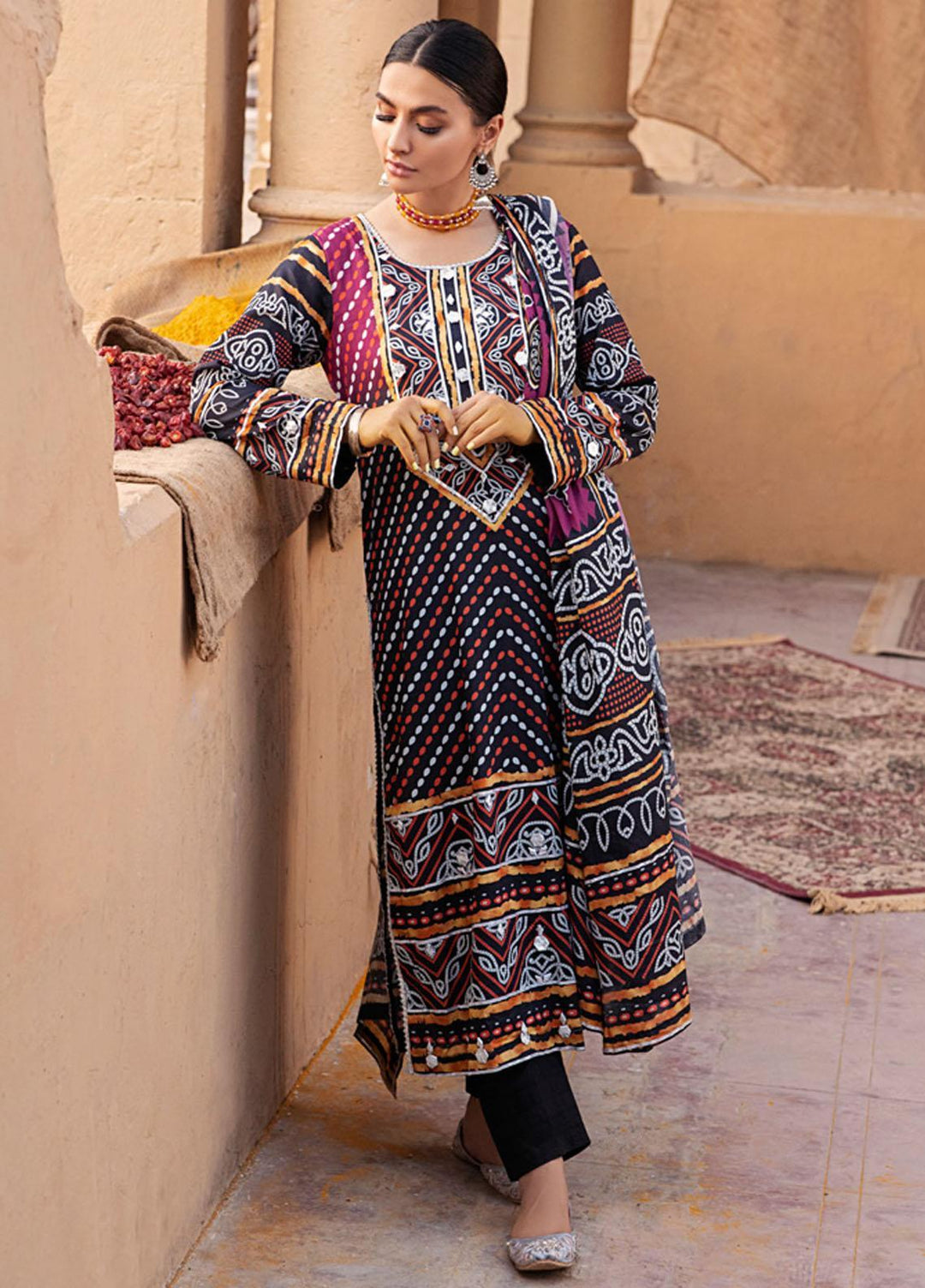 Al Karam Printed Lawn Suits Unstitched 2 Piece AK22S SS-51-22 Black - Summer Collection