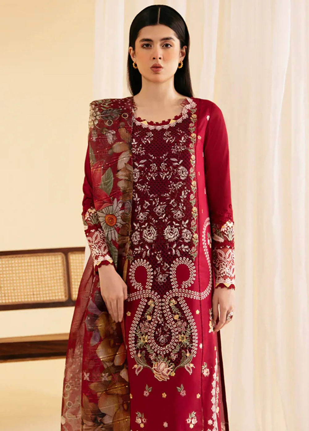 Qlinekari By Qalamkar Chikankari Lawn Suit Unstitched 3 Piece QLM24QK SQ-07 Carmin - Summer Collection