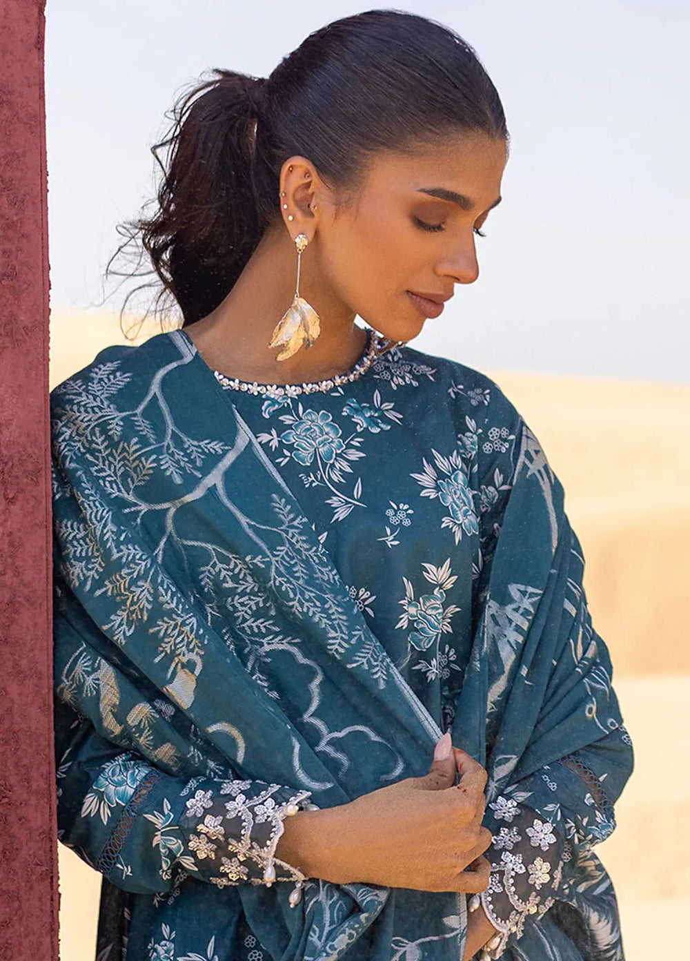 Cross Stitch Embroidered Lawn Suit Unstitched 3 Piece CS24EL2 Teal Serenity - Summer Collection