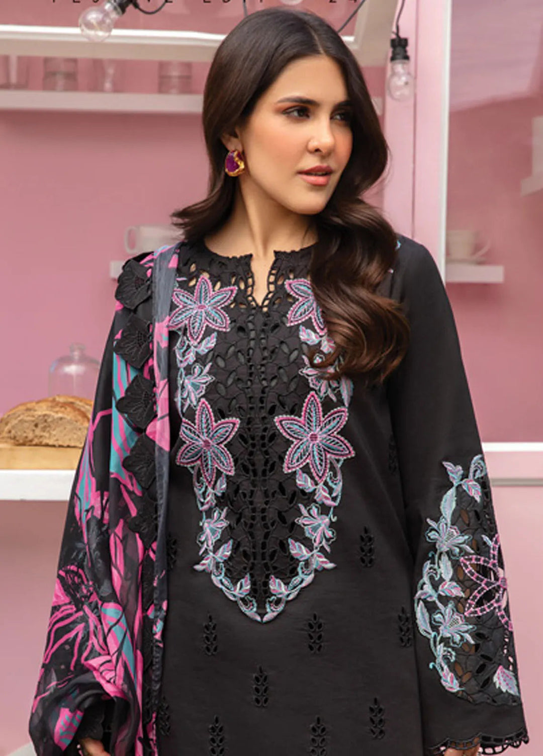 Afrozeh Chikankari Lawn Suit Unstitched 3 Piece AF24CL Caviar - Festive Collection