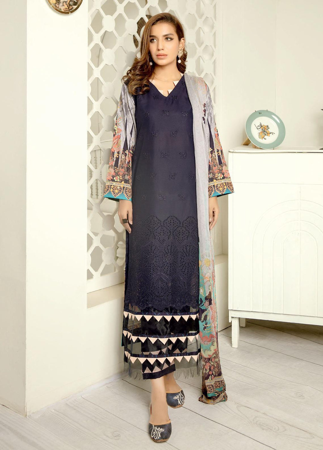 Afrozeh Embroidered Lawn Suits Unstitched 3 Piece AF21L 10 Cobalt Sky - Luxury Collection