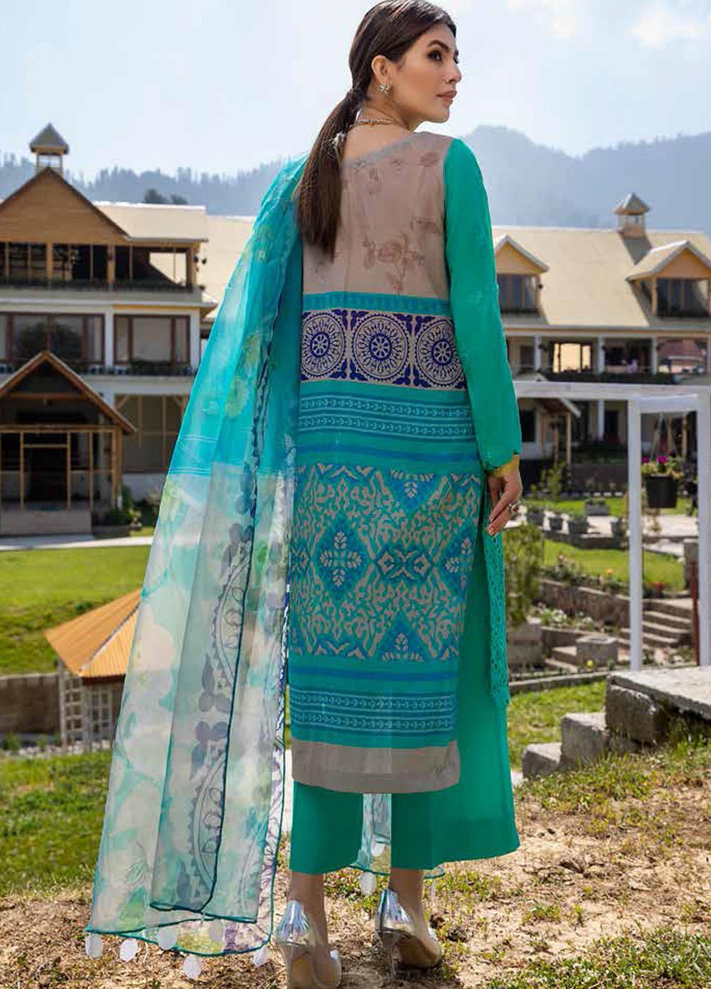 Bandhani By Al Zohaib Embroidered Lawn Suits Unstitched 3 Piece AZ21B 02 Sheesh Mahal - Summer Collection