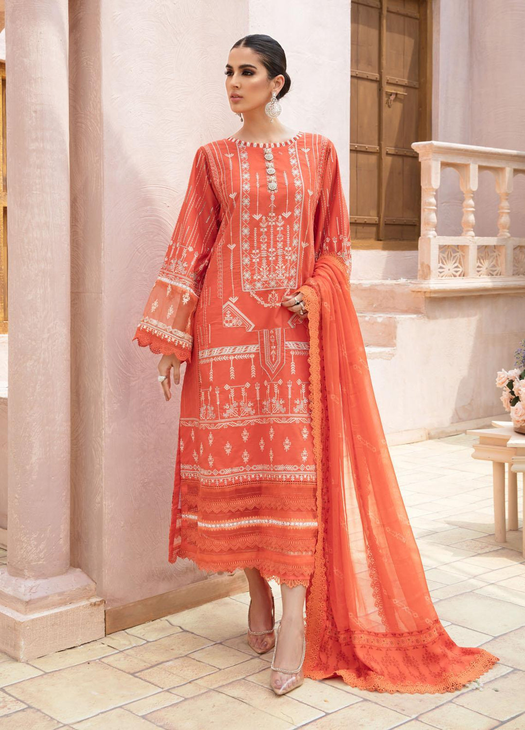 Halima Sultan Embroidered Lawn Suits Unstitched 3 Piece HS21-L3 02 Coral - Summer Collection