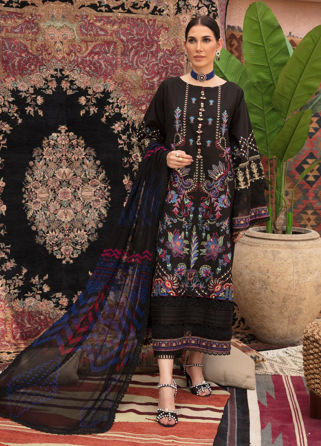 Jazmin By Adan's Libas Embroidered Lawn Suits Unstitched 3 Piece AL21J 01 Festival Fanatic - Luxury Collection