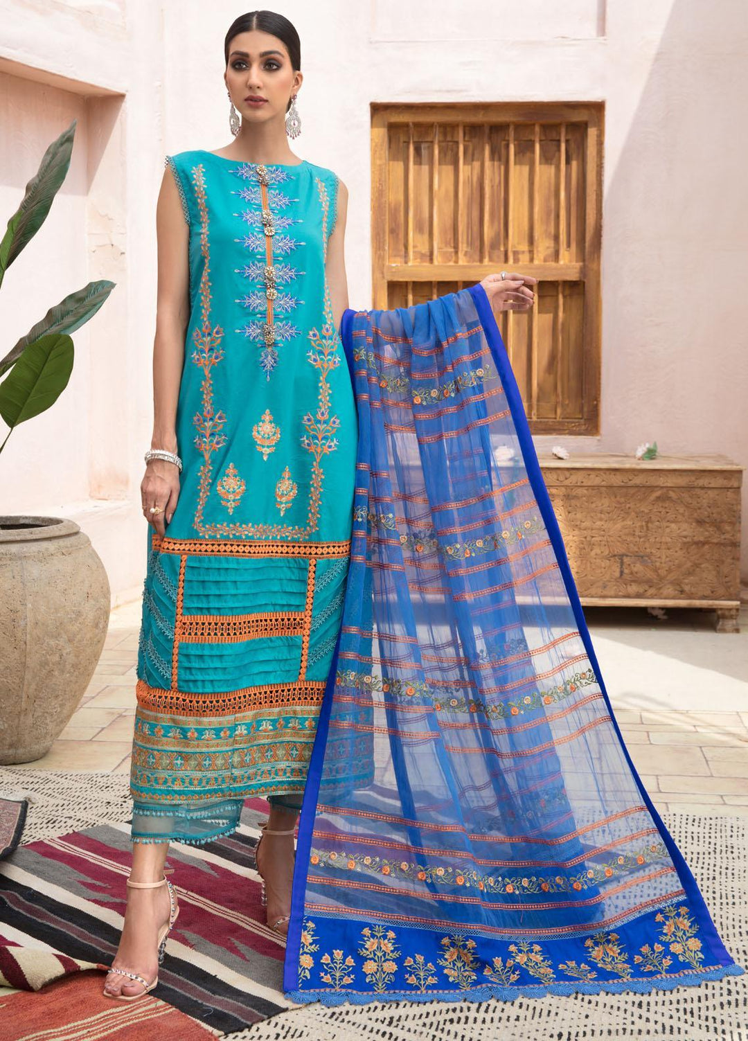 Jazmin By Adan's Libas Embroidered Lawn Suits Unstitched 3 Piece AL21J 04 Sea Treasure - Luxury Collection