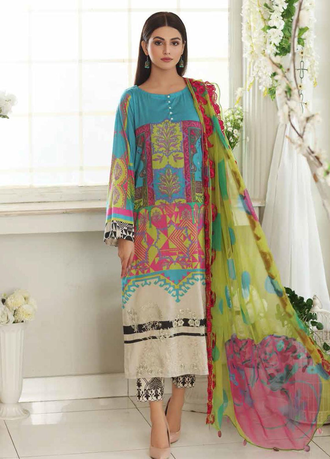 Sifa Embroidered Lawn Suits Unstitched 3 Piece SF21L SL-06-B SKY BEGONIA - Summer Collection
