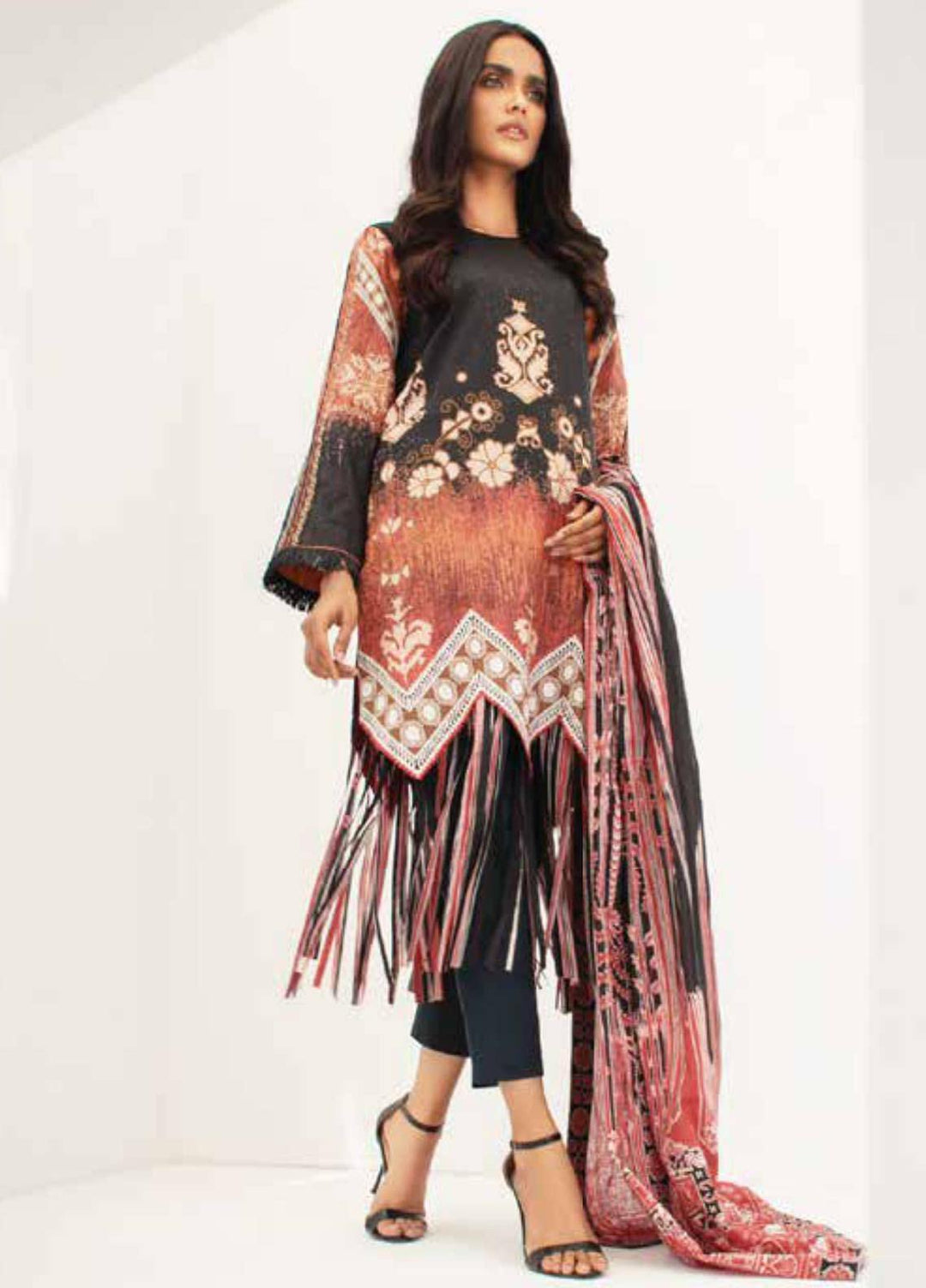 Al Karam Printed Lawn Suits Unstitched 3 Piece AK21S-2 SS-11-21-2-Black - Summer Collection