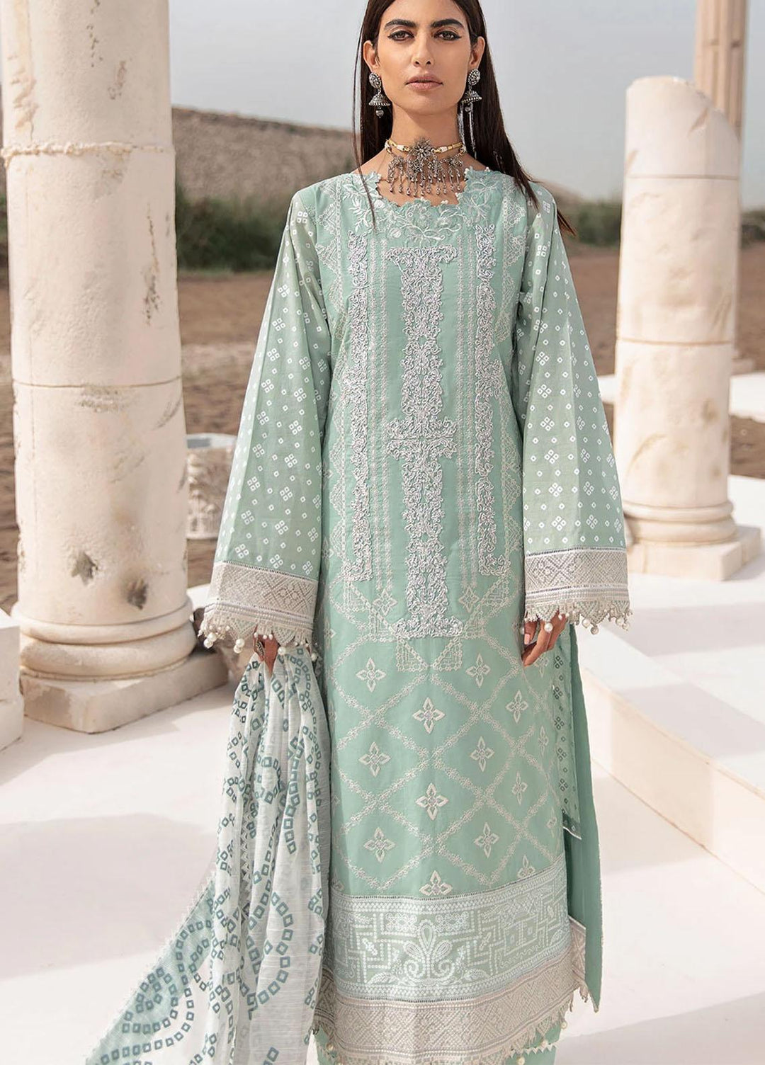 Azalea Embroidered Lawn Suits Unstitched 3 Piece AZA21F 06 Mint Green - Festive Collection