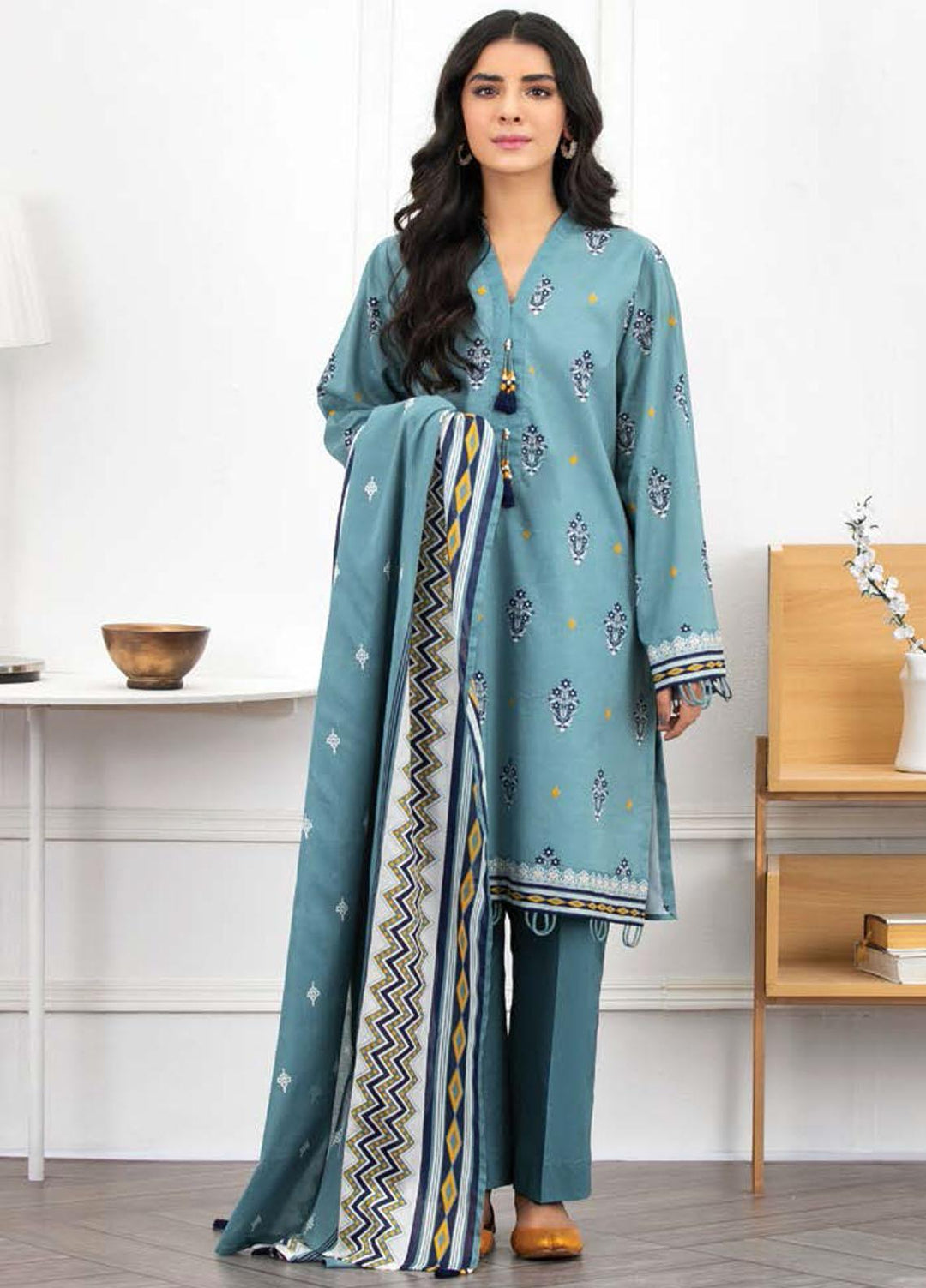 Ayeleen By Orient Textile Printed Lawn Suits Unstitched 3 Piece OT21A 173 ( TEAL ) - Summer Collection