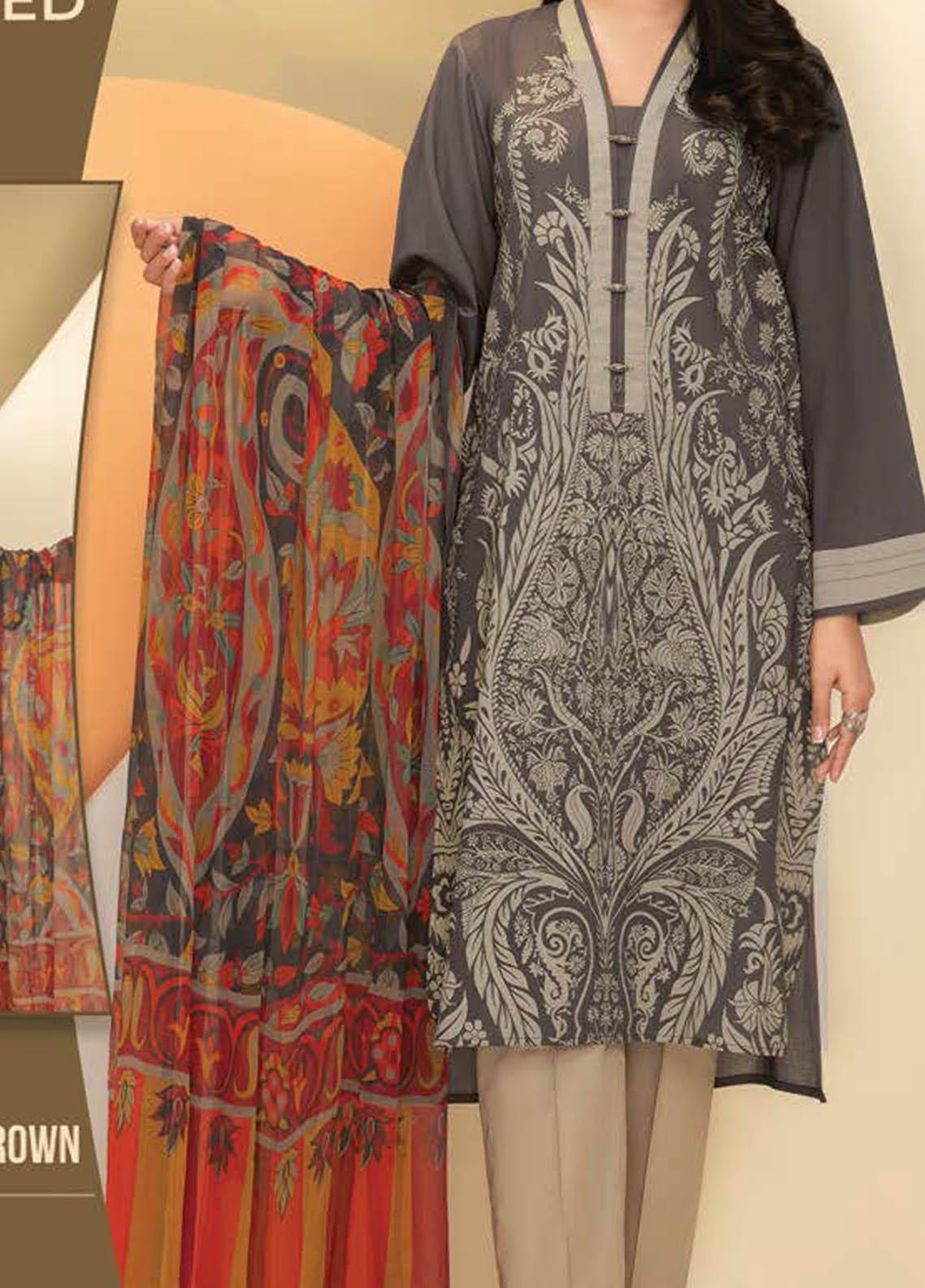 LimeLight Printed Lawn Suits Unstitched 2 Piece LL21S U-1062 BROWN - Summer Collection