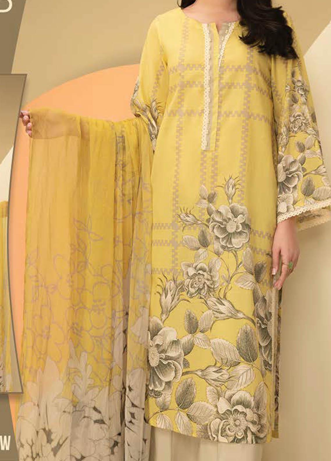 LimeLight Printed Lawn Suits Unstitched 2 Piece LL21S U-1242 YELLOW - Summer Collection