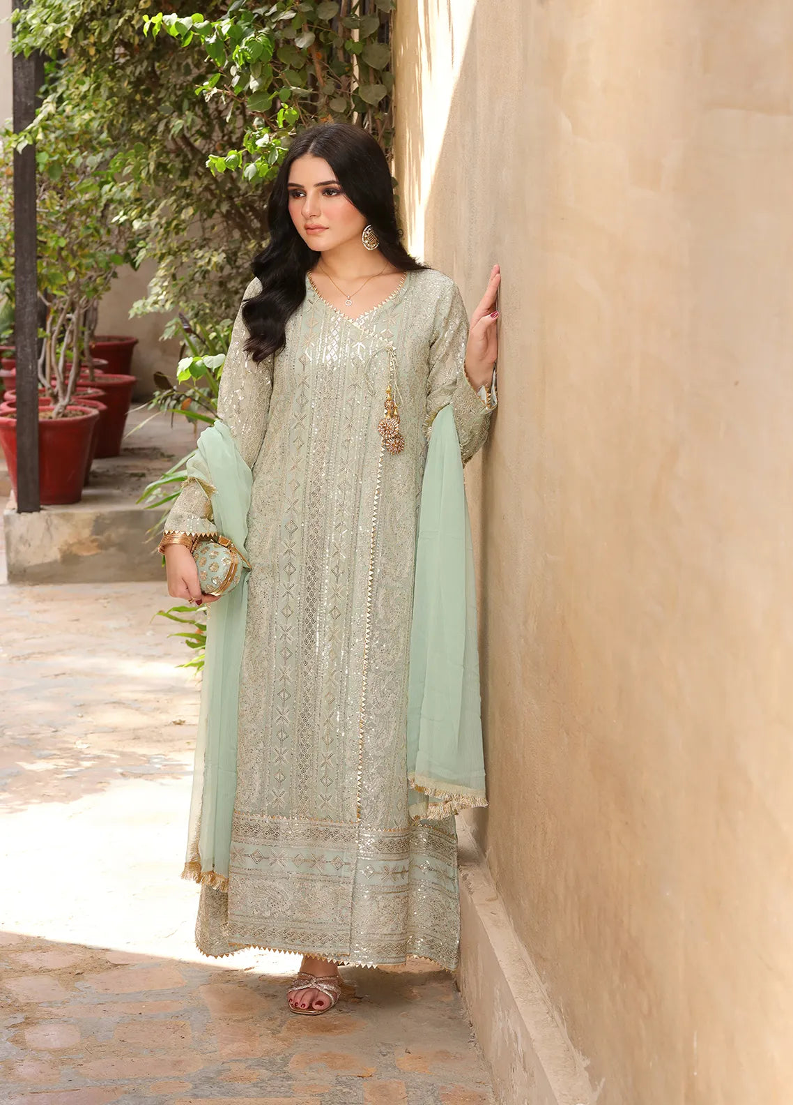 Manahils Pret Embroidered Chiffon 3 Piece Suit Kurti-122-Divine-Mint Green