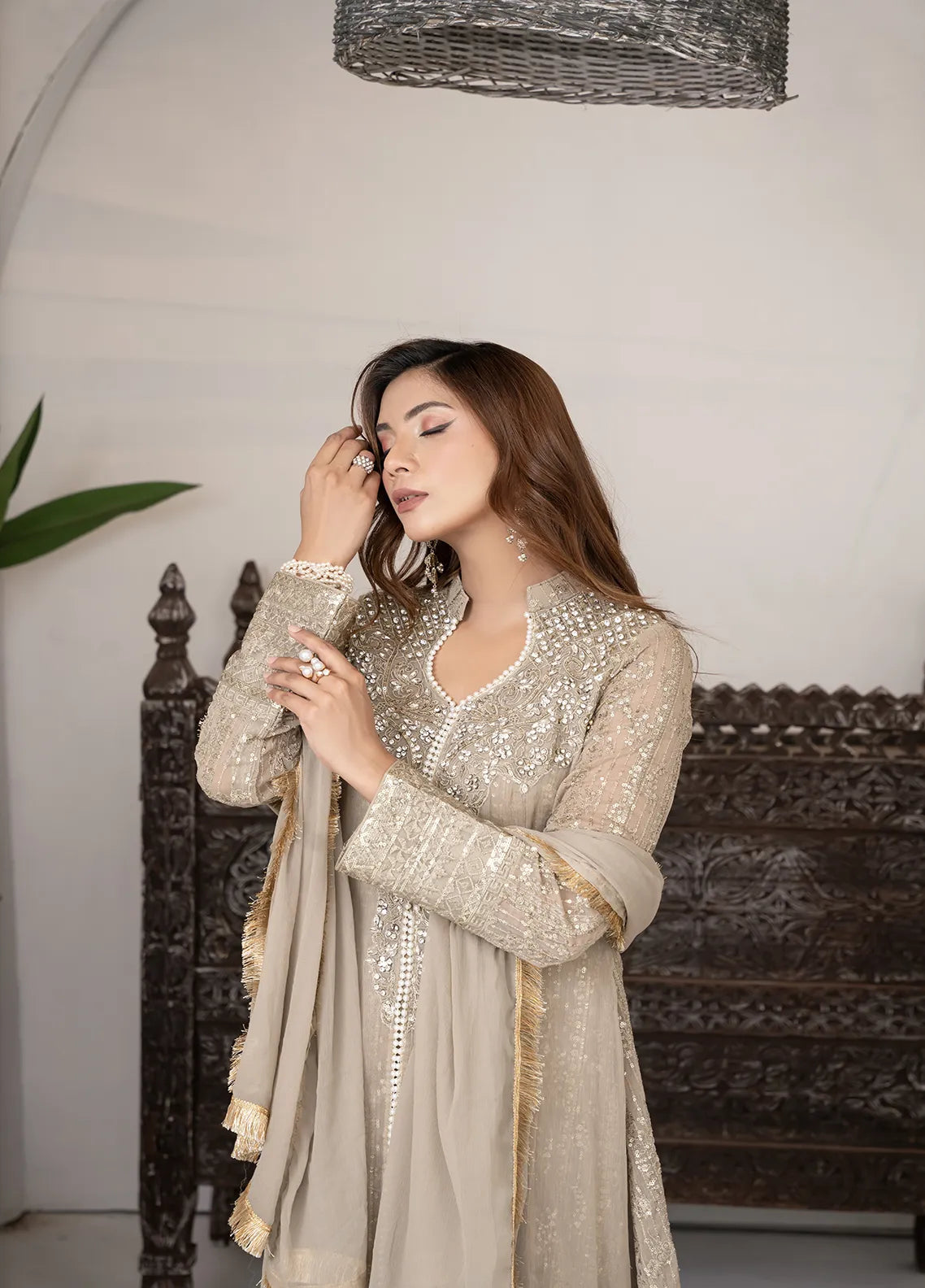 Manahils Pret Embroidered Chiffon 3 Piece Suit KURTI 125 Beige