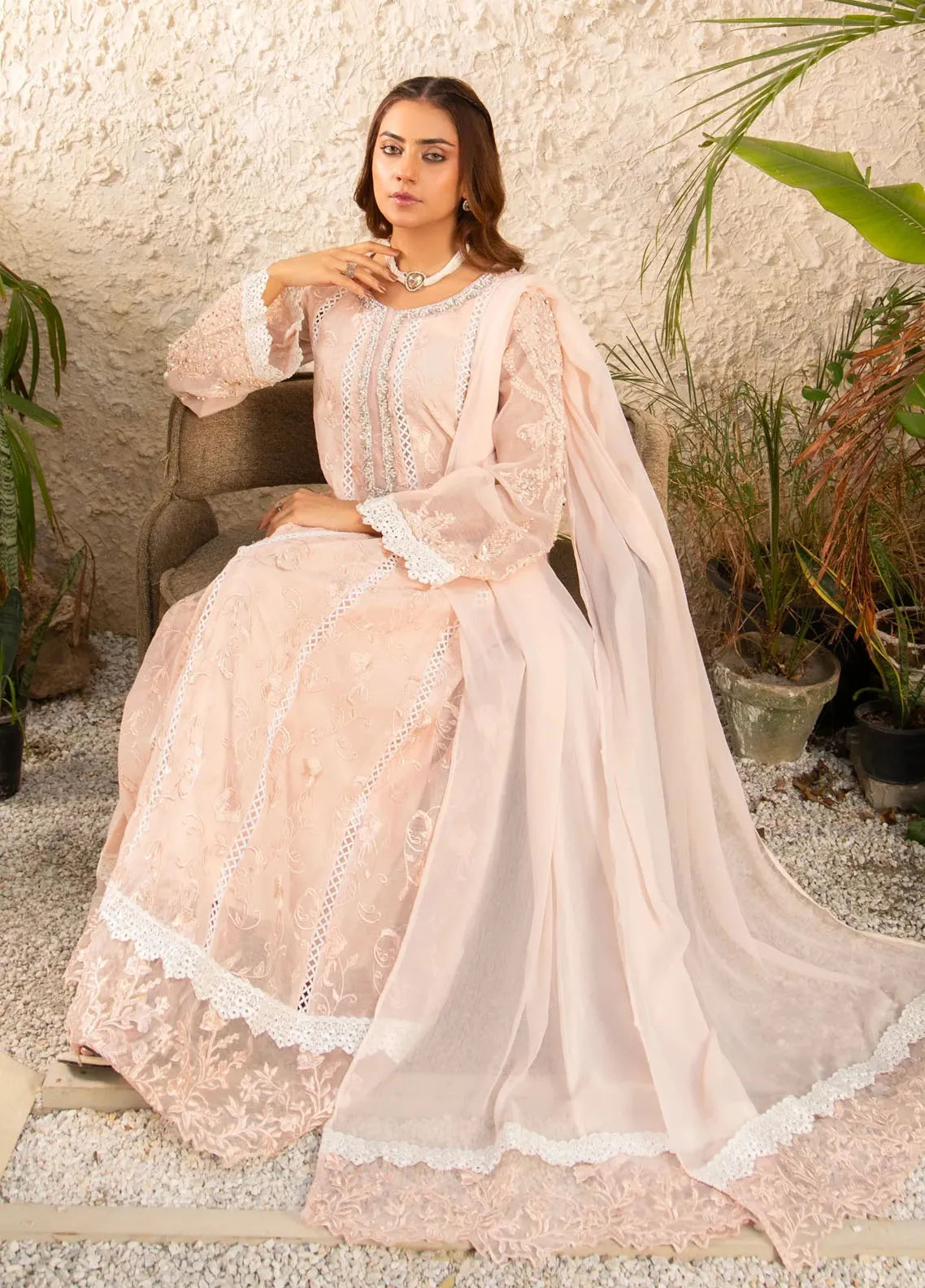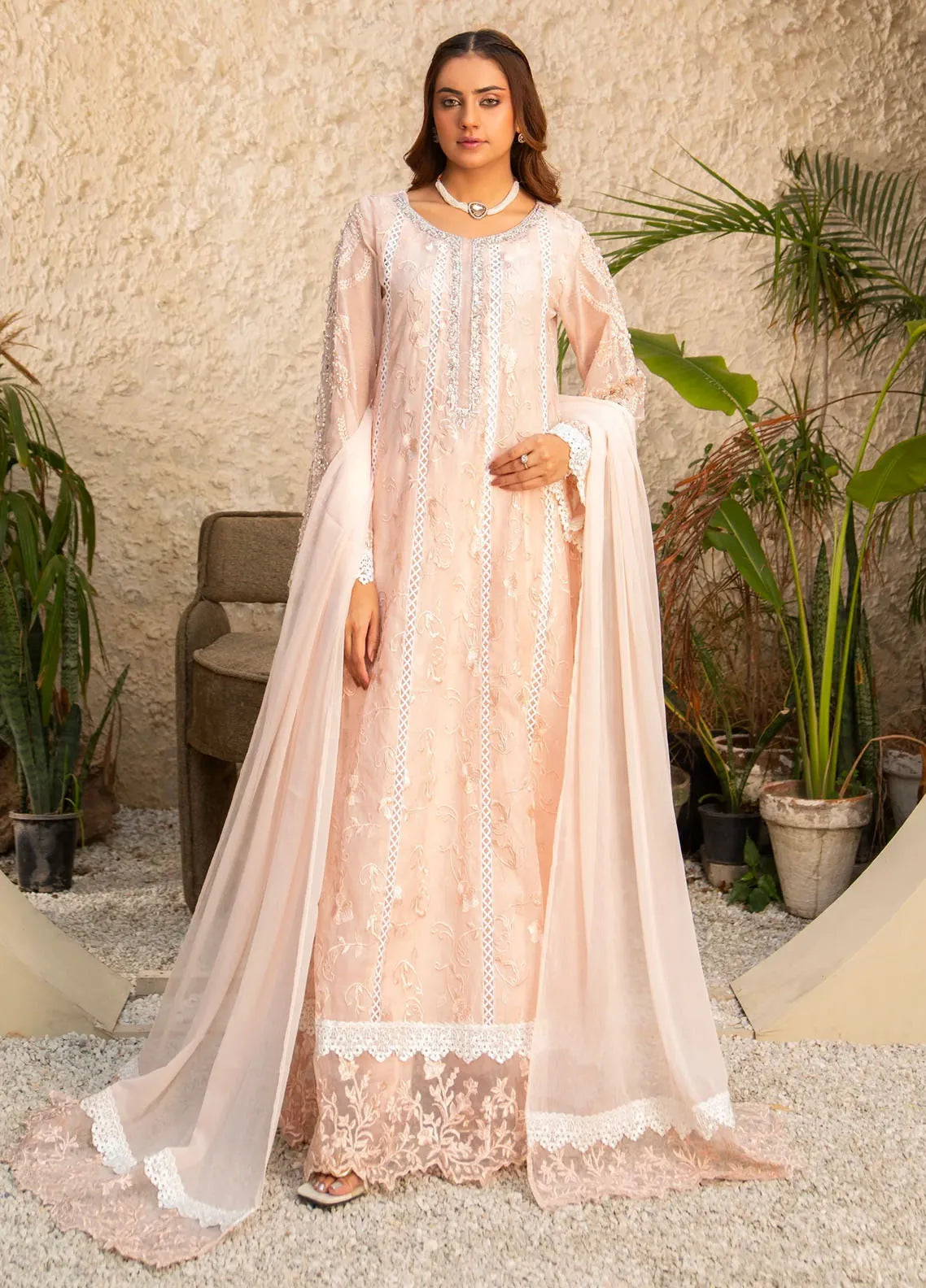 Embroidered Pret Khaddi Net 3 Piece Suit