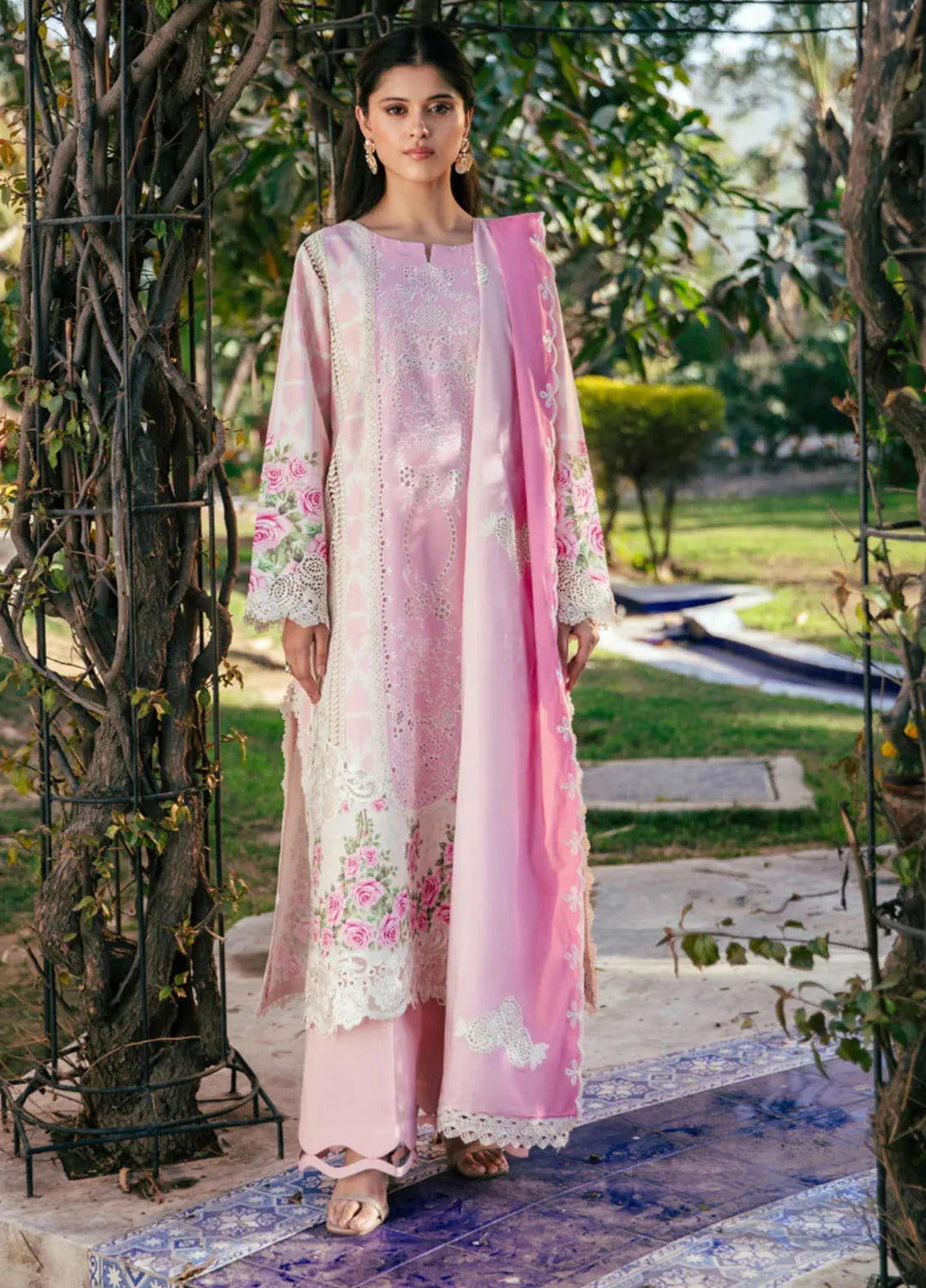 Vintage Flora By Manara Embroidered Lawn Suit Unstitched 3 Piece MNA24V Porcelain SS-04 - Summer Collection
