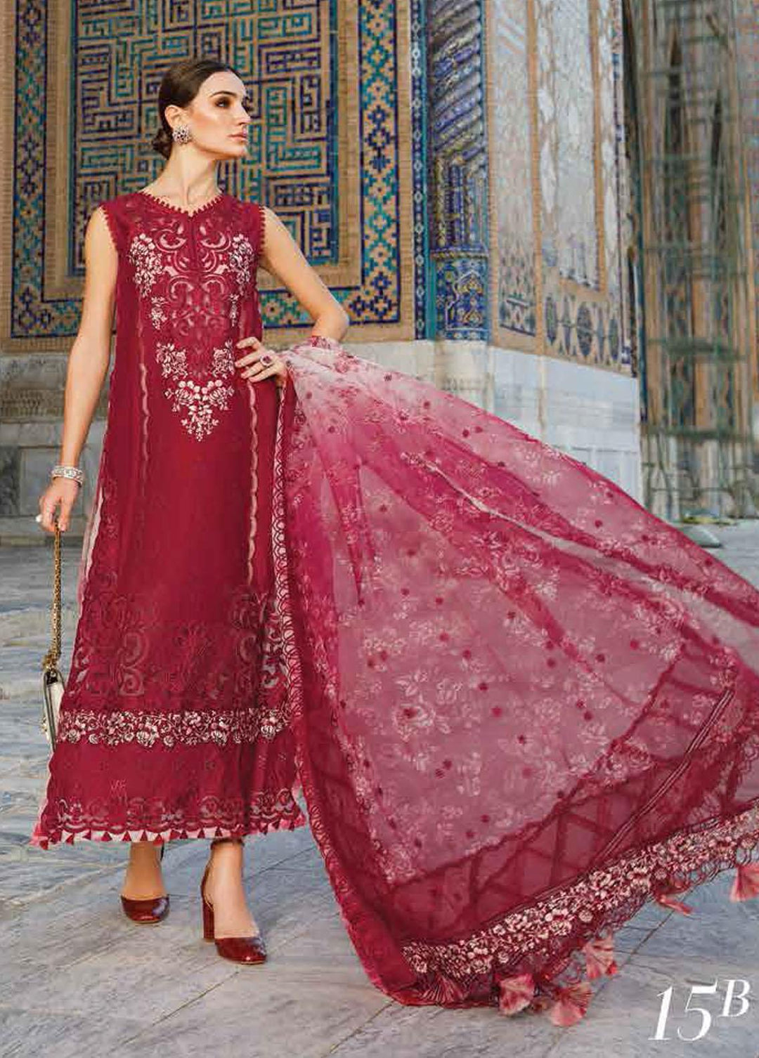 Maria B Embroidered Lawn Suits Unstitched 3 Piece MB23LE D-09 Scenic Scarlet - Eid Collection