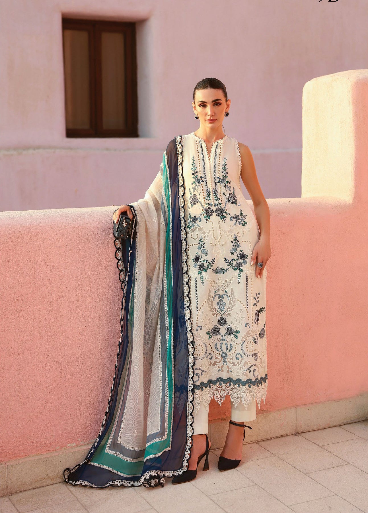 Maria B Unstitched Embroidered Luxury Lawn 3 Piece Suit MB26UEL 9B - Eid Collection