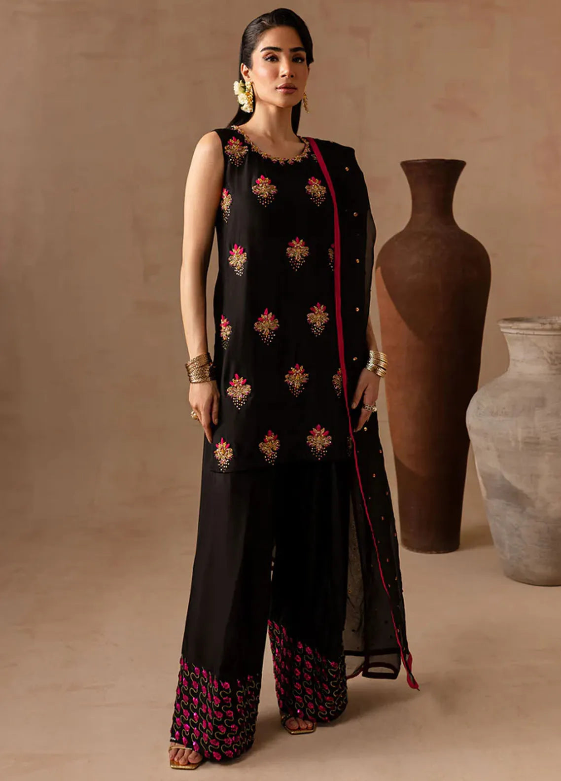 Embroidered Pret Raw Silk 3 Piece Suit