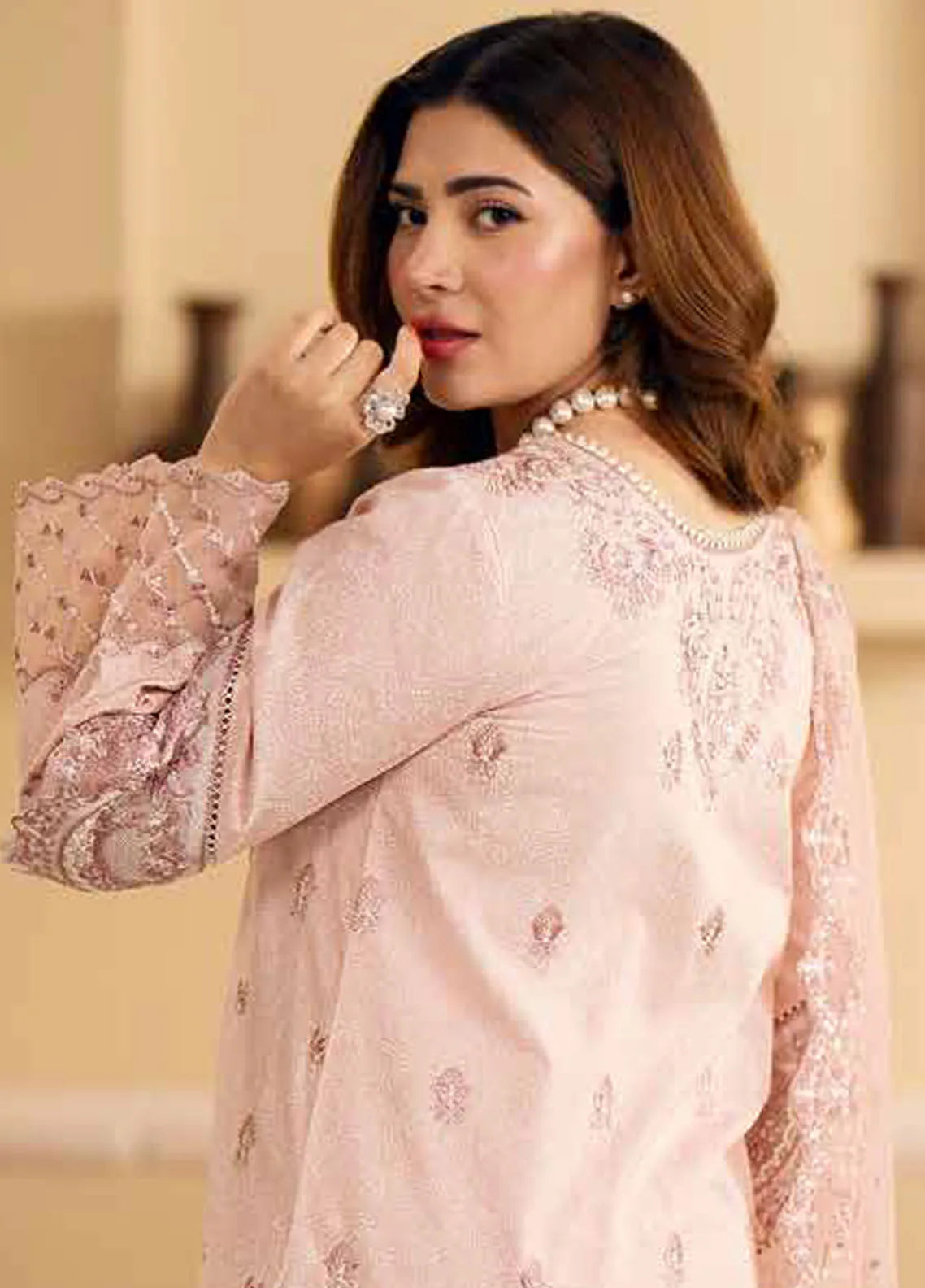 • Embroidered Front Sleeves Patti Organza 1.90 Mtr