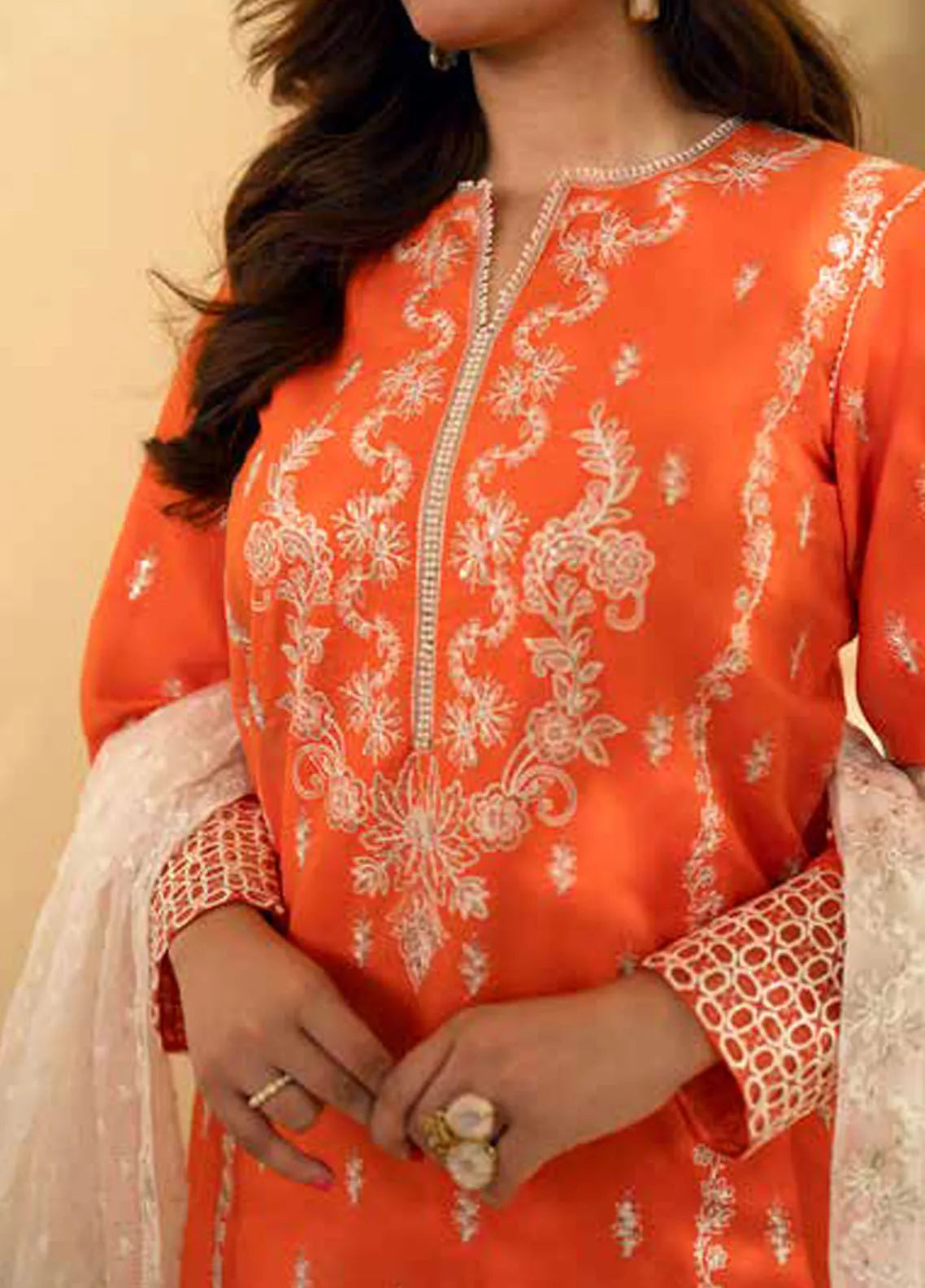 • Embroidered Back Neck Organza 1Pc