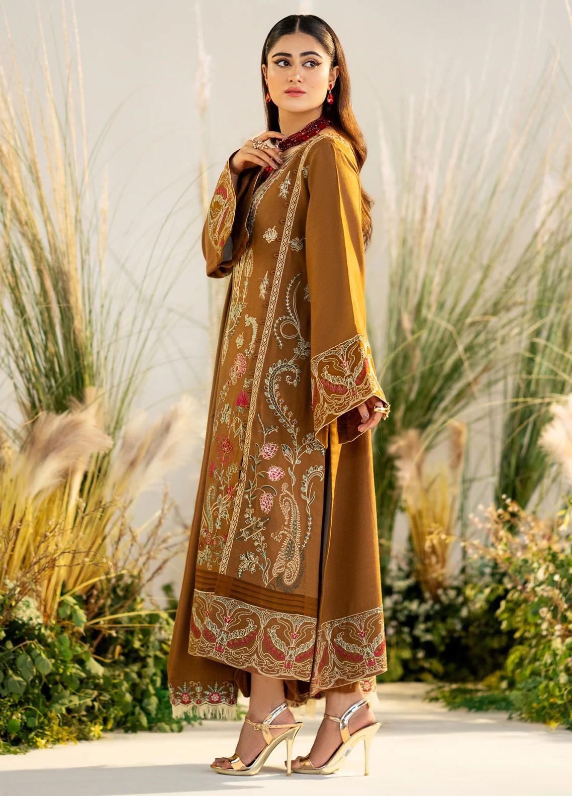 Maryum N Maria Pret Embroidered Leather Peach 3 Piece Suit MW23064 HARLEEN