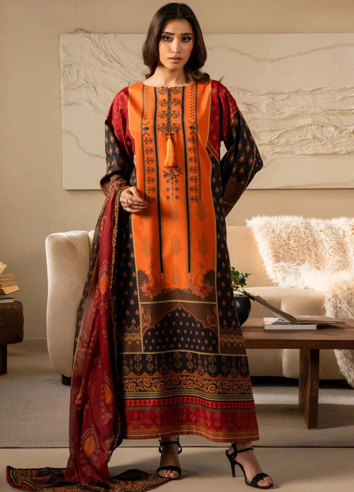 Printed Silk 3 Piece Suit