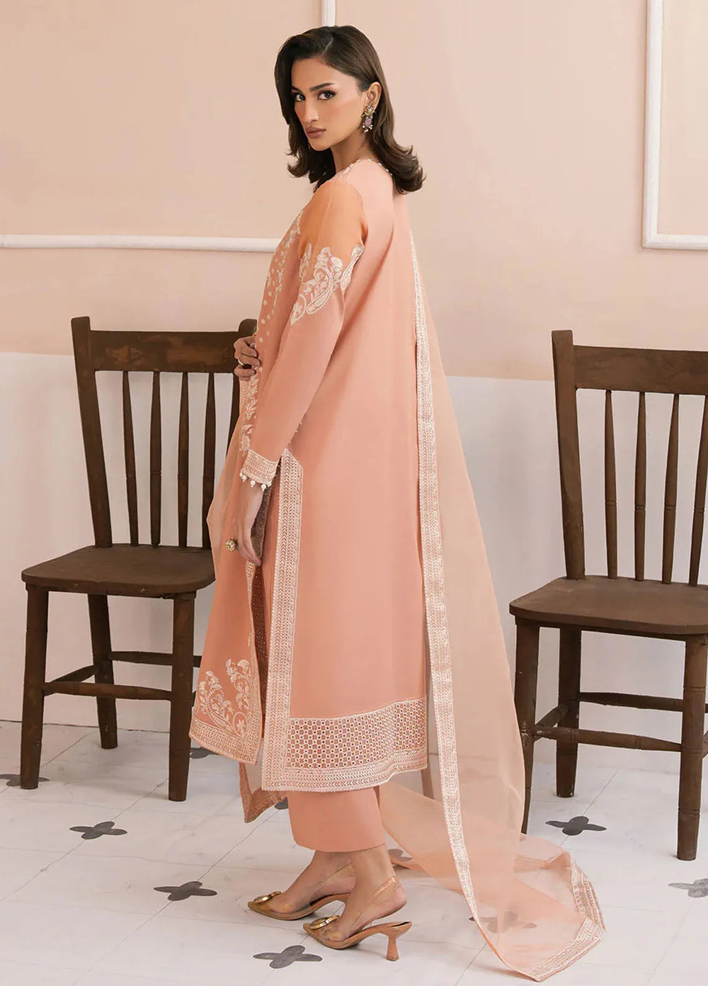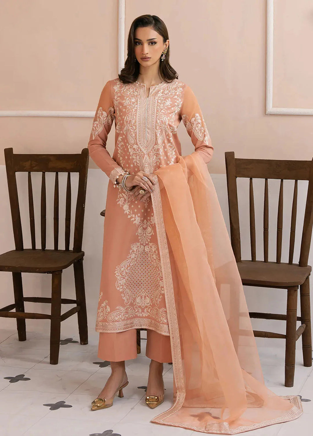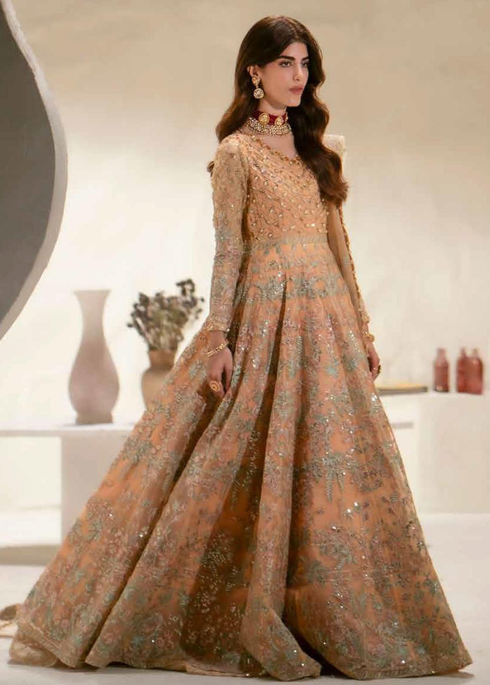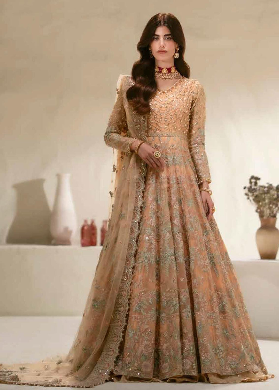 This is the ideal choice for girls to wear at their wedding and become the center of attention of the people at the event. This collection contains pure chiffon embroidered front and back, embroidered sleeves, a net lengha with embroidery over it, an embroidered chiffon dupatta, and an embroidered palu border with lining.