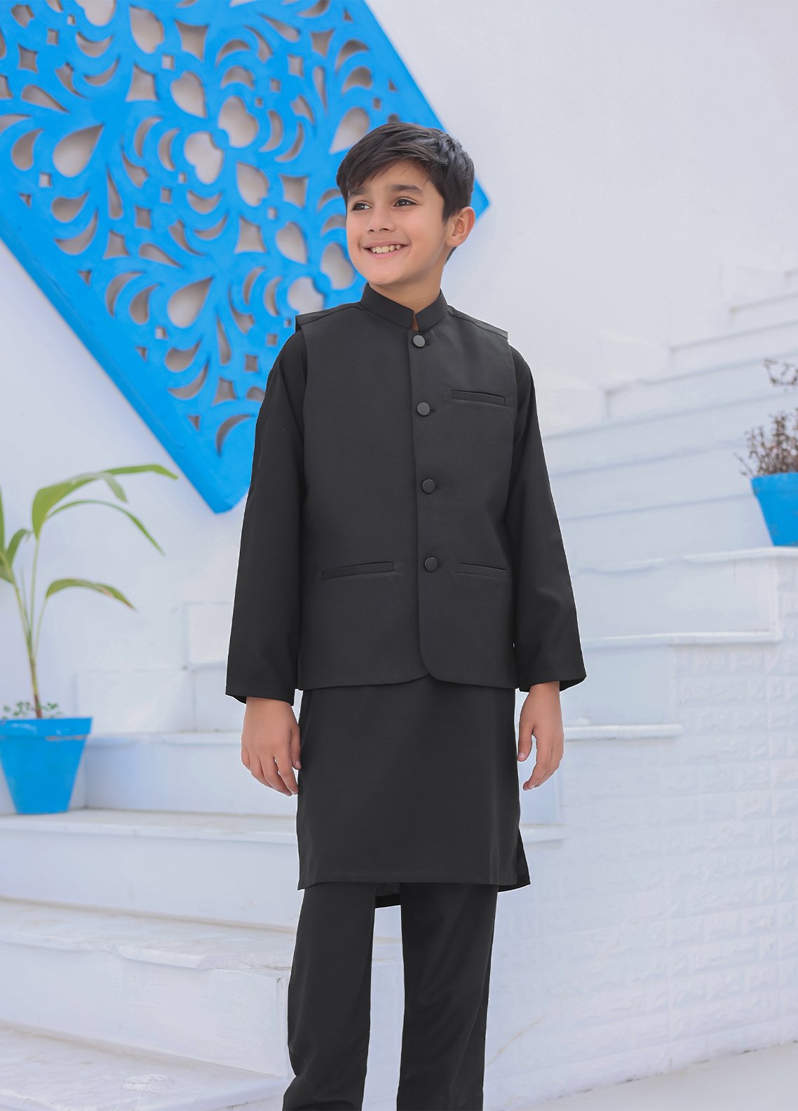 Plain Kids Stitched Kurta Trouser N Waistcoat