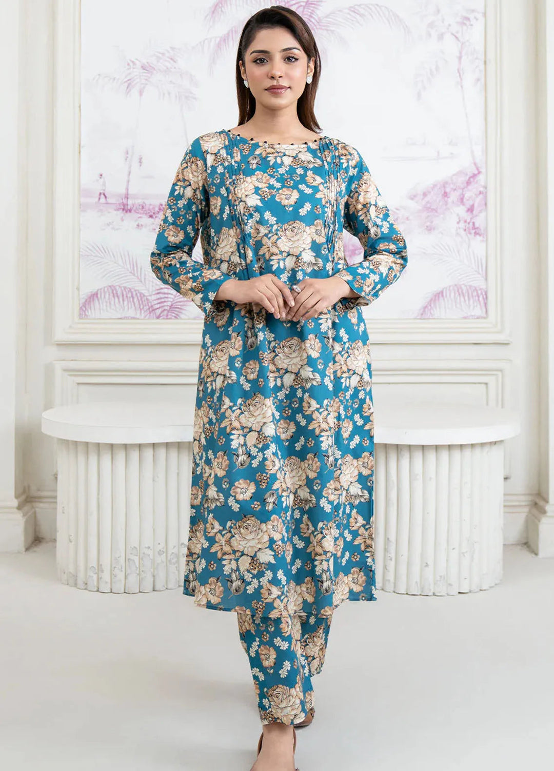 Meerak Pret Printed Khaddar 3 Piece Suit Turquoise