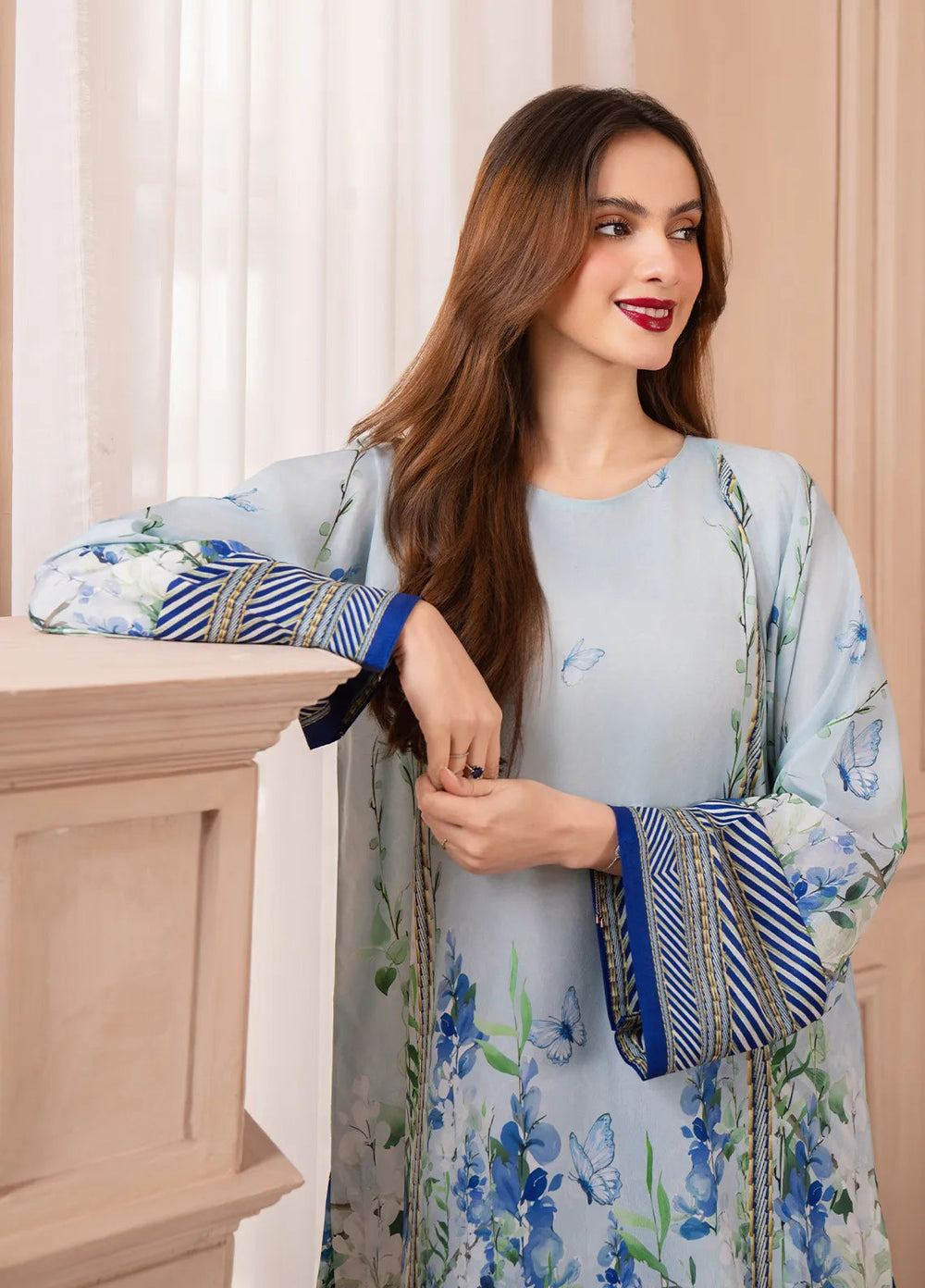 Meerak Pret Printed Khaddar 3 Piece Suit Sapphire