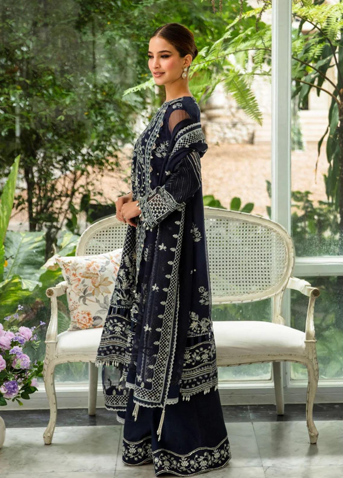 Dastaan By Meeral Embroidered Organza Suits Unstitched 3 Piece MRL24D Neelam - Formal Collection