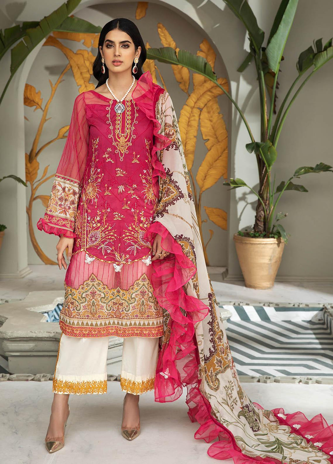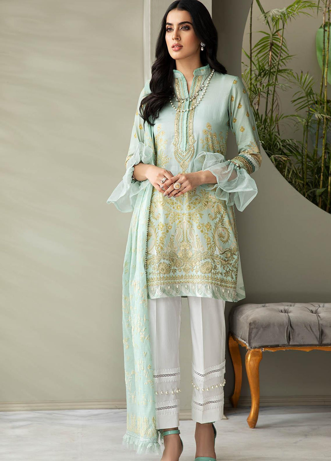 Chiffon is something women love to be wrapped in. Especially the women of Pakistan, as to the reason why chiffon looks absolutely beautiful crafted in traditional ethnic fashion. Ashna luxury chiffon collection featured 4 piece unstitched dresses having  hand work and rich embellishments all over giving the dress a real opulent luxurious look. The suit comes with raw silk undershirts paired with an embroidered chiffon dupatta and a cotton silk trouser. A total of six designs this collection had to offer, each being unique in its artwork and color palette.