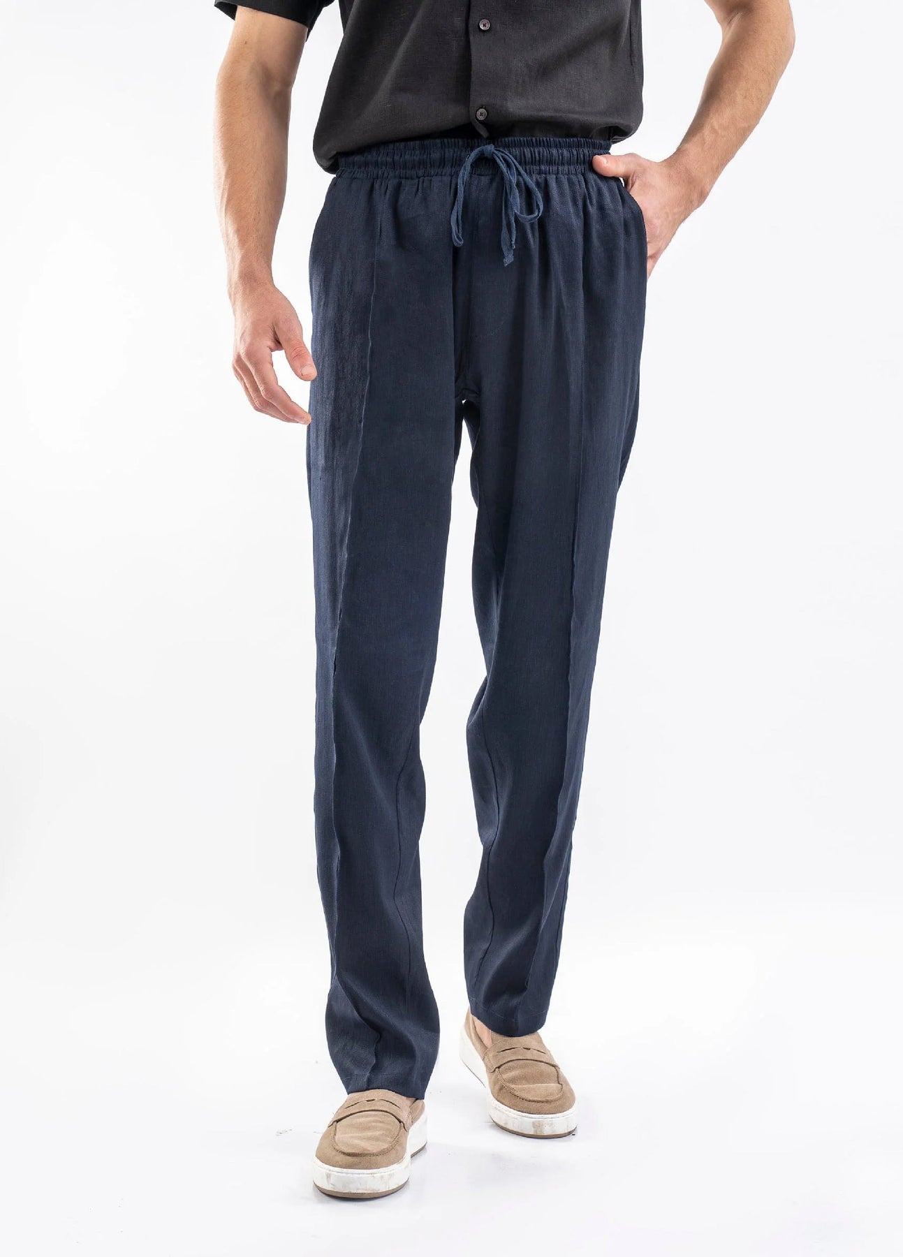 Experience ultimate comfort with our men's navy blue pajama trouser, crafted from 100% breathable linen. Lightweight and stylish, it features a relaxed fit to ensure that you stay comfy on hot day. Perfect for lounging, casual outing or traveling