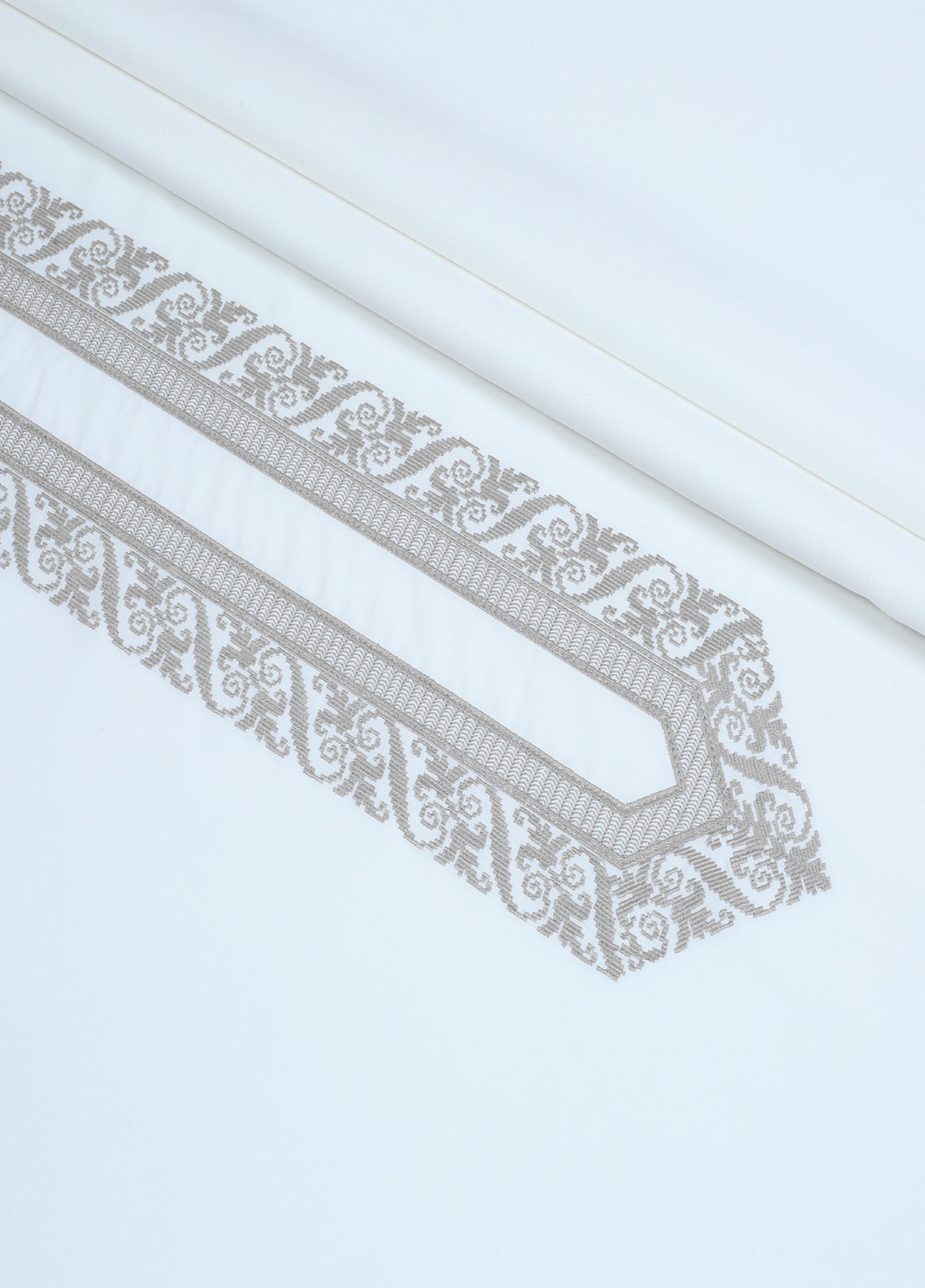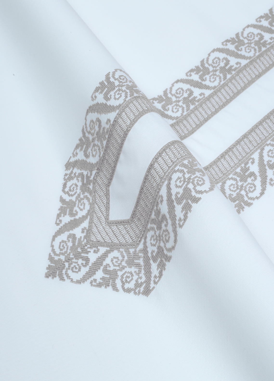 Product Category: Men Unstitch Cotton Thread Fancy-Stitch Neckline Embroidered Kameez Shalwar with Contrast Colors & Signature Pattern Embroidery Design.