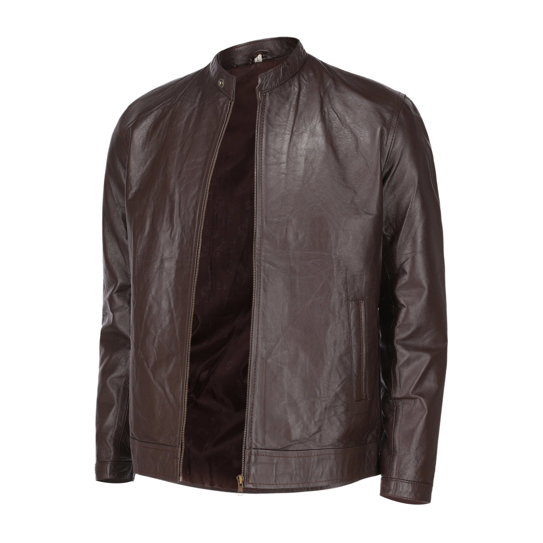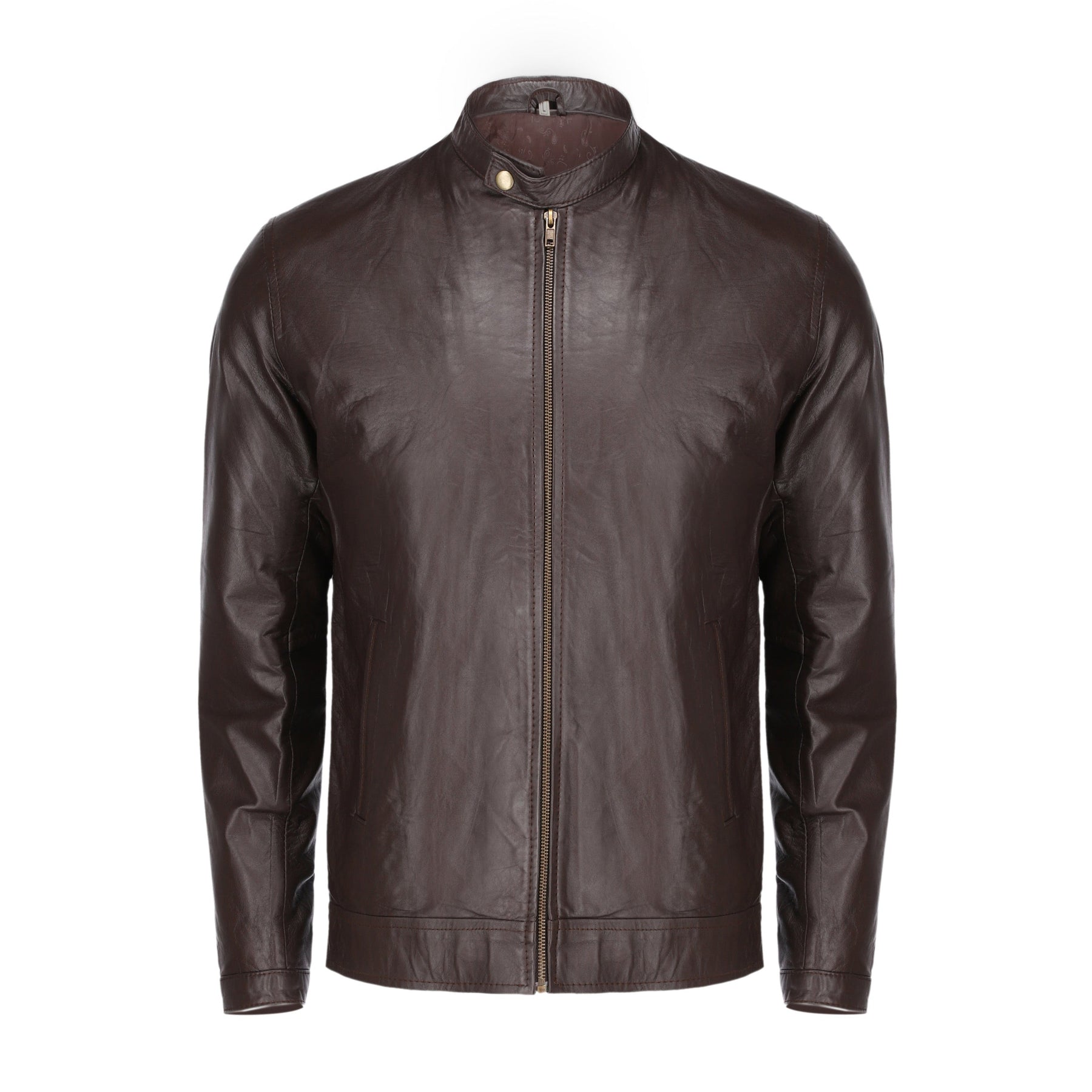 This Brown Mens Pure Sheep Leather Jacket is an ultimate trendsetter. It comes with a simple and classy design and features, front zip fastener, snap button collar, and a modern fit.