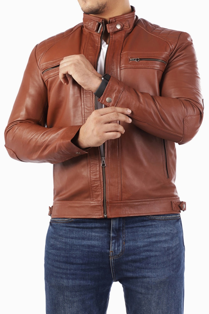 Men's Casual Signature Diamond Lambskin Leather Jacket-Tan